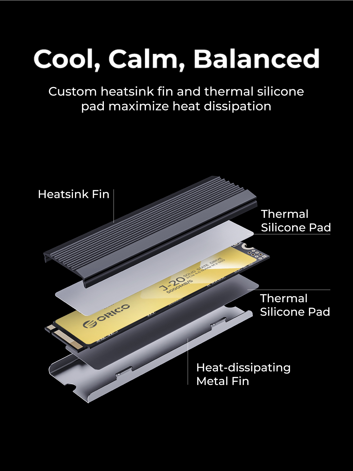 To maintain sustained high performance, the SSD comes with a dedicated cooling vest and thermally conductive silicone pad. It effectively reduces the temperature of the solid-state drive, ensures its stable operation for a long time, and prevents overheating, thus extending the service life of the hard drive.