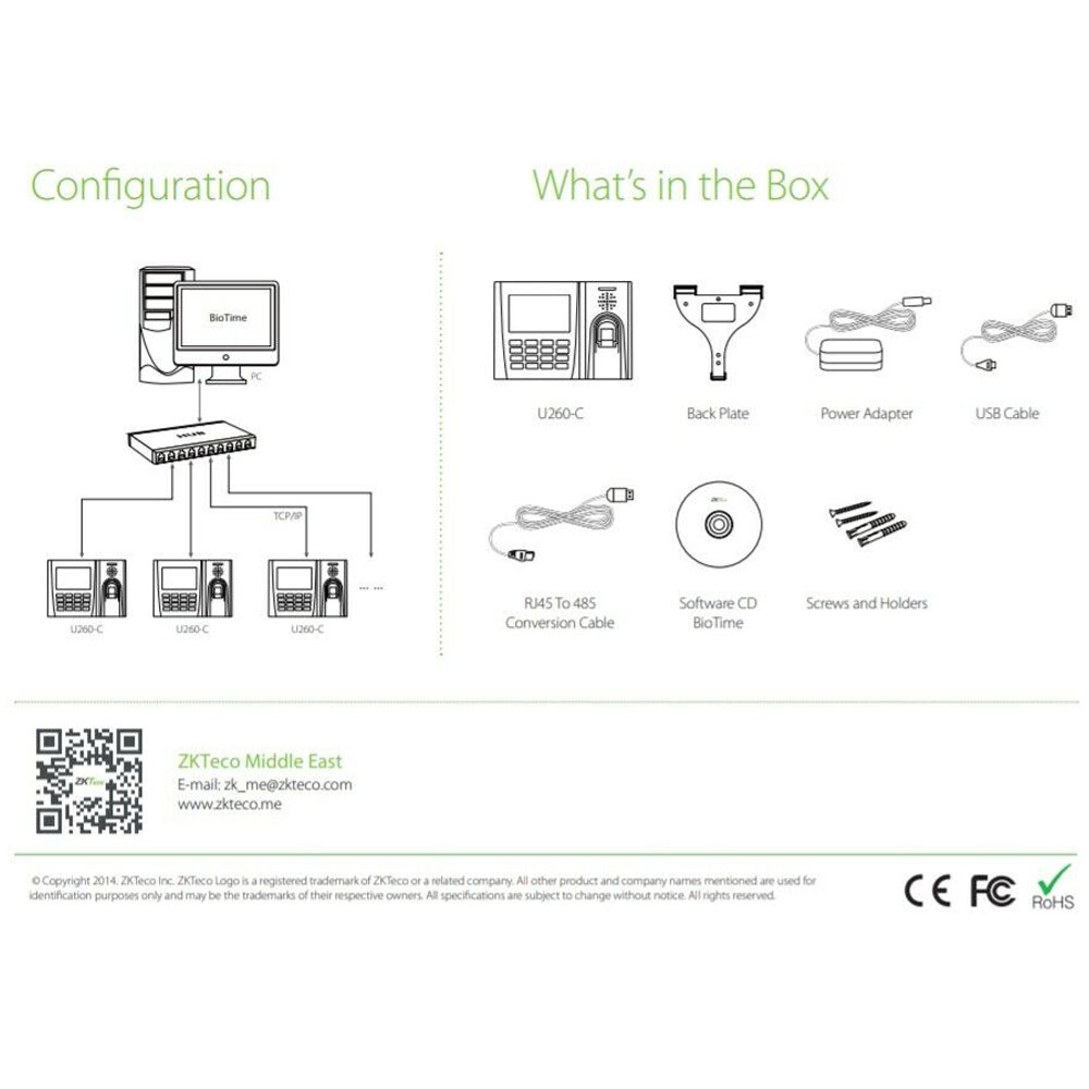 ZKTeco U260 TCP/IP Fingerprint Time Attendance System Employee Attendance Terminal