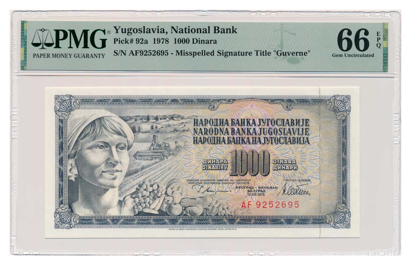 | YUGOSLAVIA banknote 1000 Dinara 1978 with Guverne error !!! | |||
