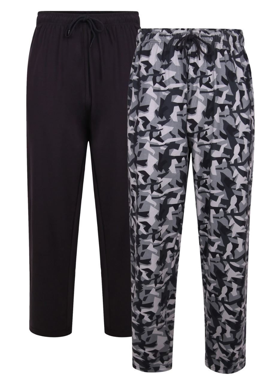 The KAM Mens Twin Pack Lounge Wear Pants feature a stylish plain camo pattern, crafted from 100% cotton for extra comfort. With an elasticated drawstring waist and practical pockets, these pants are perfect for lounging or casual outings. Available in a generous 5XL size, this twin pack ensures you have the ultimate in comfort and style.