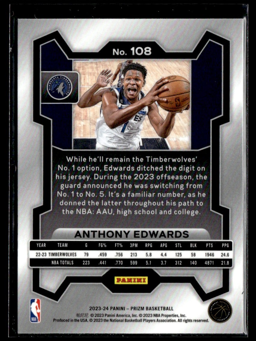 | 2023-24 PANINI PRIZM ANTHONY EDWARDS MINNESOTA TIMBERWOLVES #108 |