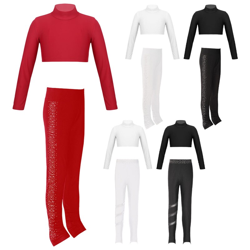 Kids Girls Tracksuits Bell-bottom Cropped Sweatshirt Outfits Zipper Sweatsuits