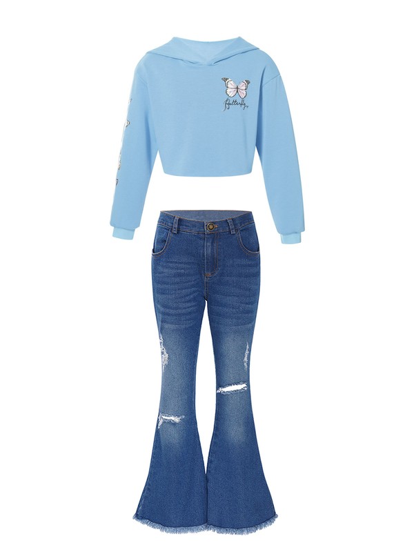 Long sleeve hooded cropped sweatshirt is printed with butterfly pattern, makes your girl look more adorable.