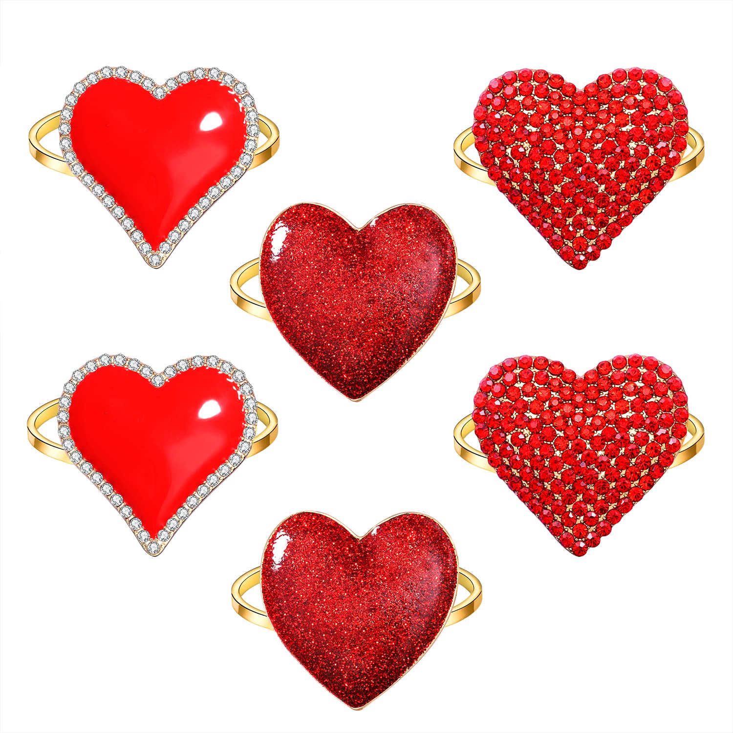 Pack of 6 heart napkin rings,features enamel,glitter and rhinestone red heart design,Use it to decorate the dining table and increase the romantic dining atmosphere