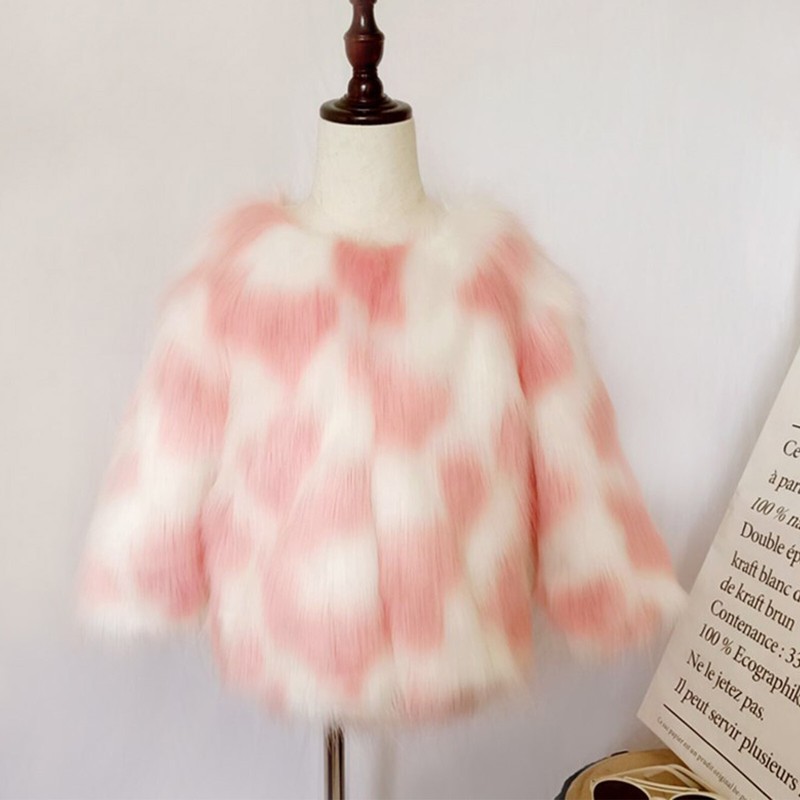 Faux fur coat with color block design looks fuzzy and makes your girls more beautiful. Buttons closure allows your child to wear easily.