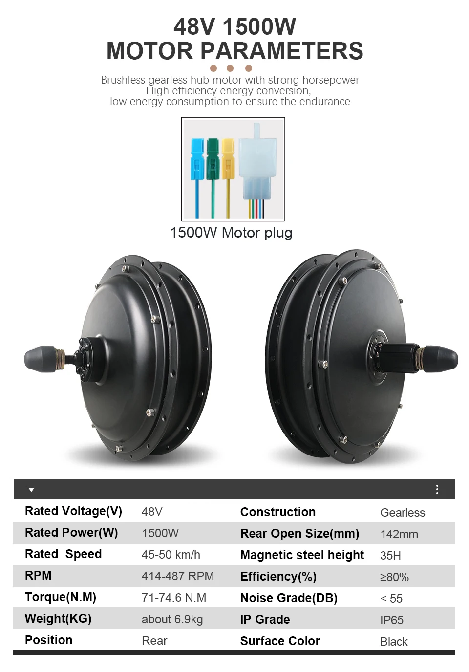 48V 1500W Rear Hub Motor: