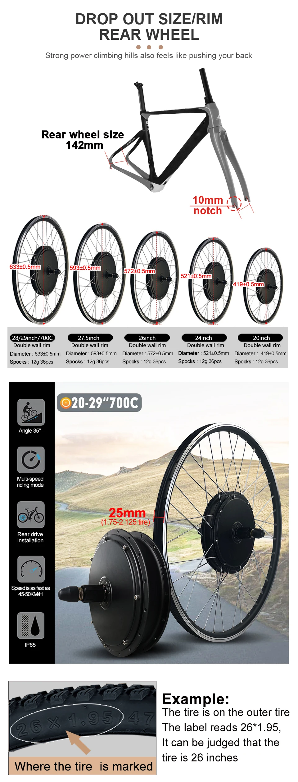 ●Rear drive open size (mm):142mm
