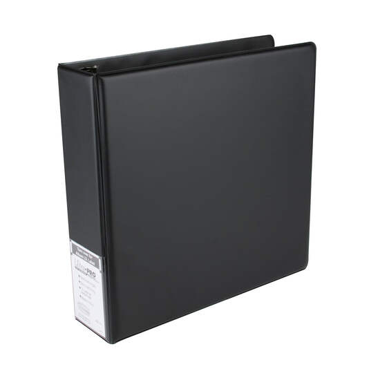 Premium binder for 8-1/2" by 11" pages with plain black cover. Reinforced 3" metal D-ring with booster for easy loading of pages. Album has rich foam padding with 2 interior pockets and a clear I.D. holder on the spine for easy organization.