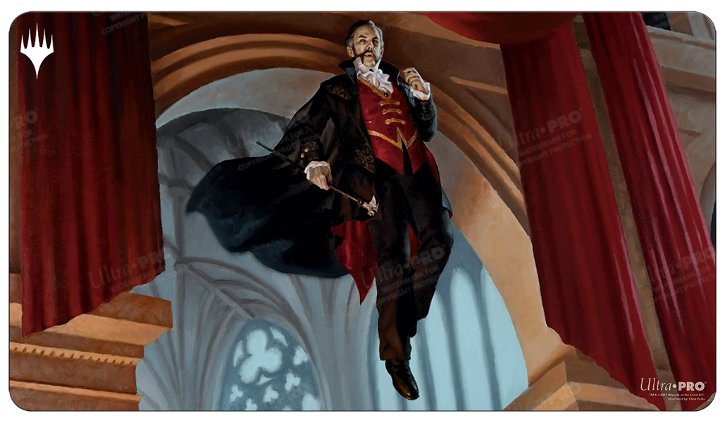 Playmats feature exclusive crops of popular Magic: The Gathering Innistrad Crimson Vow artwork of Strefan, Maurer Progenitor. Made with a soft fabric top to reduce damage to cards during play and a non-slip rubber backing to keep the playmat from shifting during use, playmats enhance the gameplay experience. With dimensions of approximately 24 in. x 13.5 in., a playmat also makes an excellent oversize mousepad for home or office.