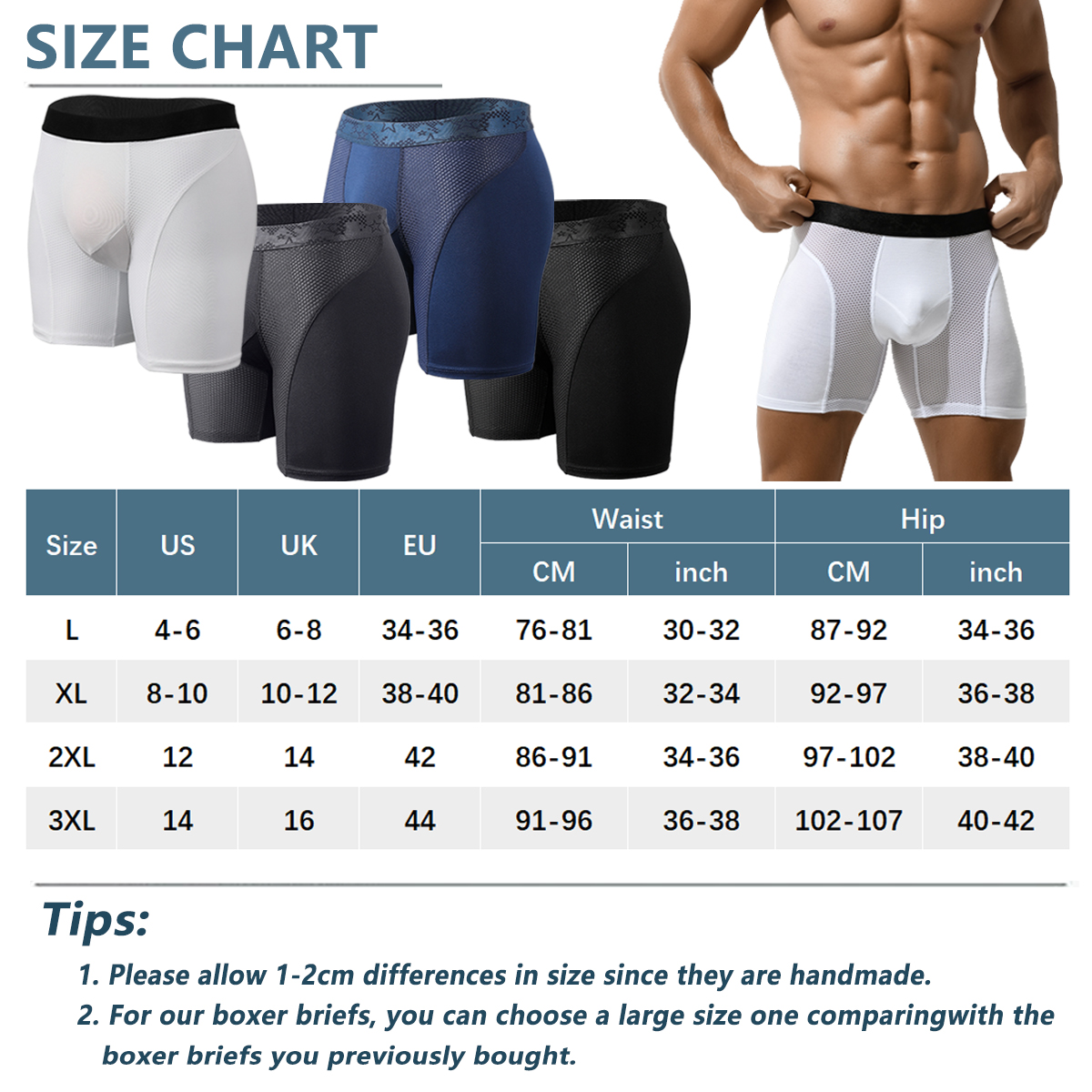 Stretchy and Well-Fitting: The stretch and smooth waistband not only make the boxer briefs more suitable for different kinds of shapes but also give you a natural and comfortable sense without ant tightening feelings.We adjusted the long leg length to be just right for full fitting support and in these mens underwear for superior elasticity.