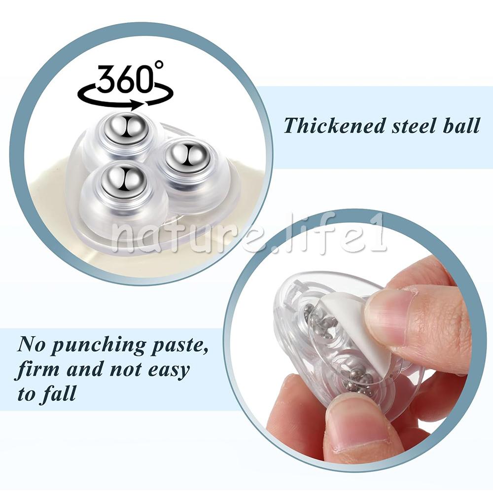 8pcs Paste Universal Wheel 360 Degree Free Rotation Self Adhesive Rolling Caster Pulleys No Noise for Bins Storage Box Furniture Feature: 1. Durable: The rotating wheel is made of ABS material and small steel balls. Four viscous rotating wheels can carry 88 pounds (approximately 40 kilograms), making it strong, smooth, and easy to roll. 2. Unique Design: The rolling caster pulley is equipped with three rolling balls, which can rotate freely in 360 degrees. When used, it is smooth and quiet without scratching the ground. 3. Easily Move: You can move heavy objects and other furniture with this universal wheel in your home. It can move heavy objects easily without any pressure. 4. Easy Installation: You only need to install small household appliance casters on the bottom of the object without drilling holes to move. It is recommended to wait 24 hours for it to become more secure. The small steel ball may not rotate during transportation. Please manually roll it to make it rotate smoothly. 5. Widely Used: Mini caster wheels are suitable for small appliances, storage bins, trash cans, trash cans, furniture, or other items that need to be moved. Specification: Product size: about 38 * 38mm Product material: ABS, stainless steel Color: ransparent Height: 13mm Maximum bearing capacity: 40kg/4 pieces Installation: Paste and install, just stick to the bottom of the box Advantages: 360 ° rotation, silent and smooth Packaged Included: 8pcs Paste Universal Wheel +8pcs stickers Note: * Due to the different monitor and light effect, the actual color of the item might be slightly different from the color showed on the pictures. Thank you! * Please allow 1-2cm measuring deviation due to manual measurement.