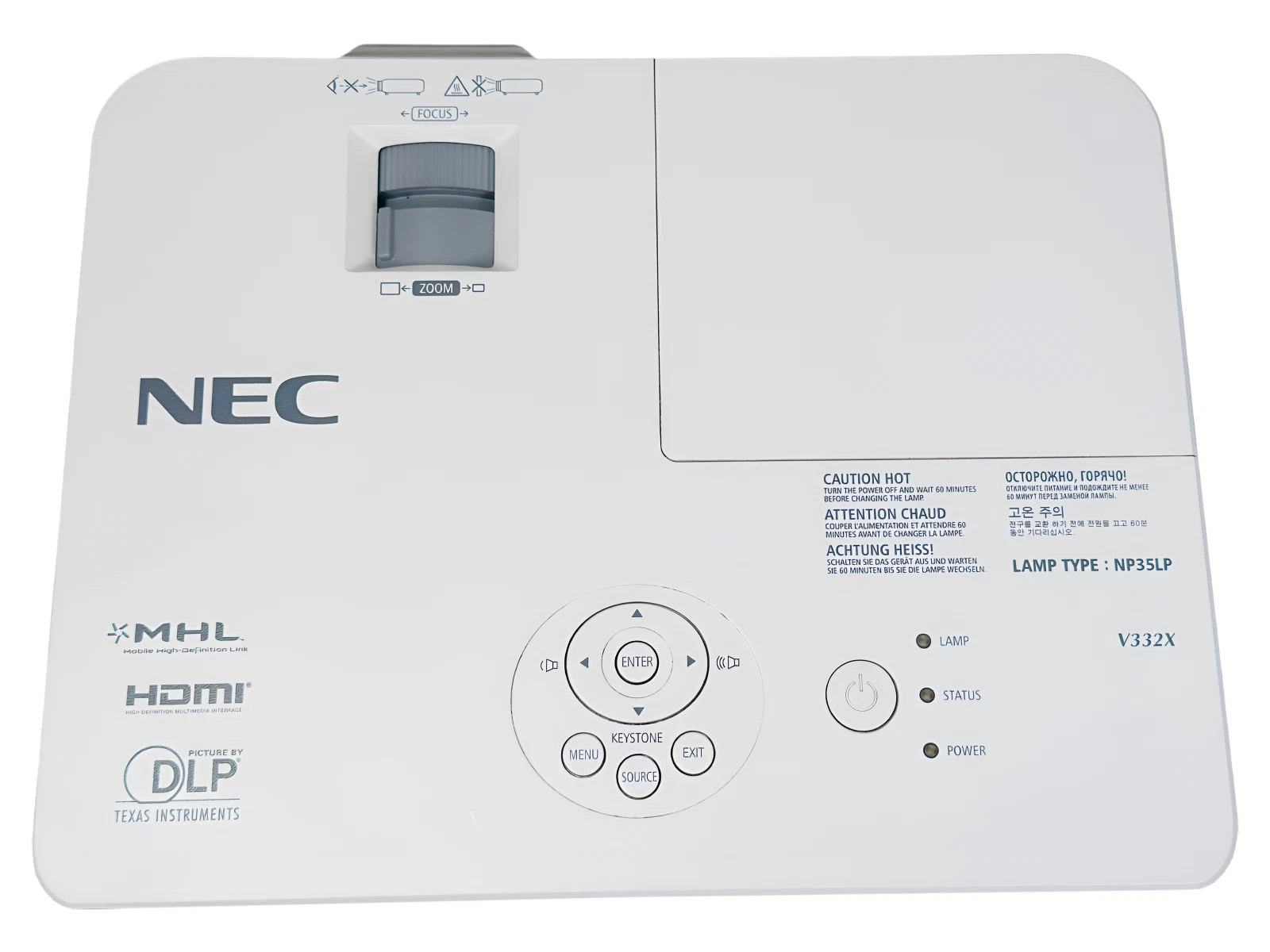 The NEC V332X Projector is a XGA Conference Room Projector. This lamp based projector is capable of displaying 3,300 Lumens at its brightest setting with a native resolution of 1024x768 , and is 3D capable. The internal DLP technology touts higher contrast, less visible pixels and more portability.