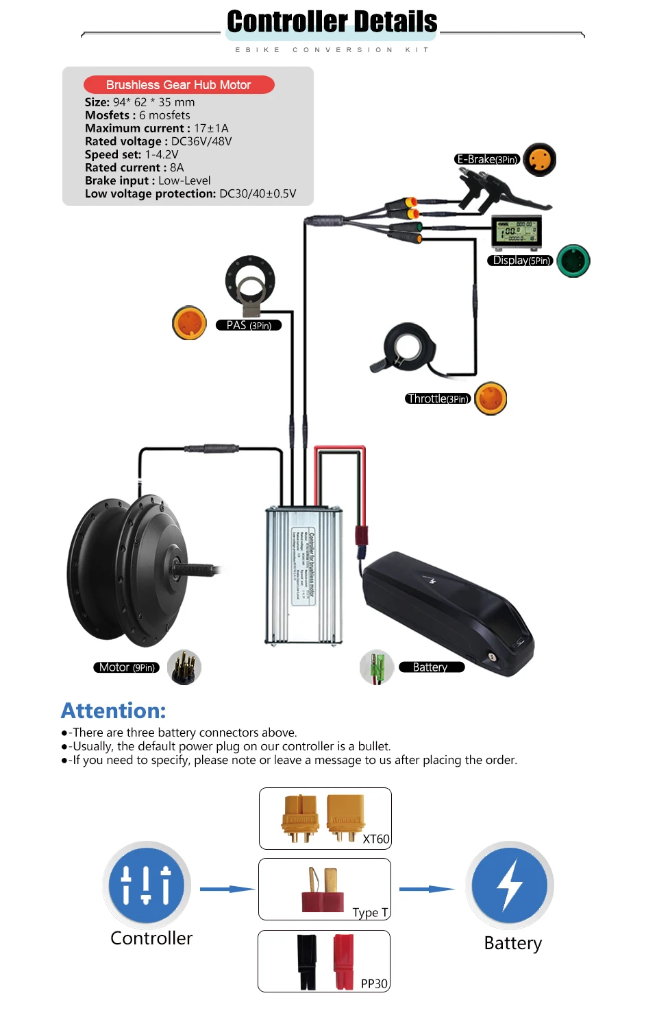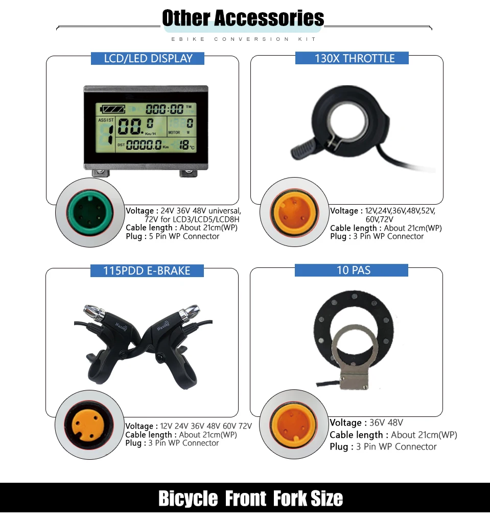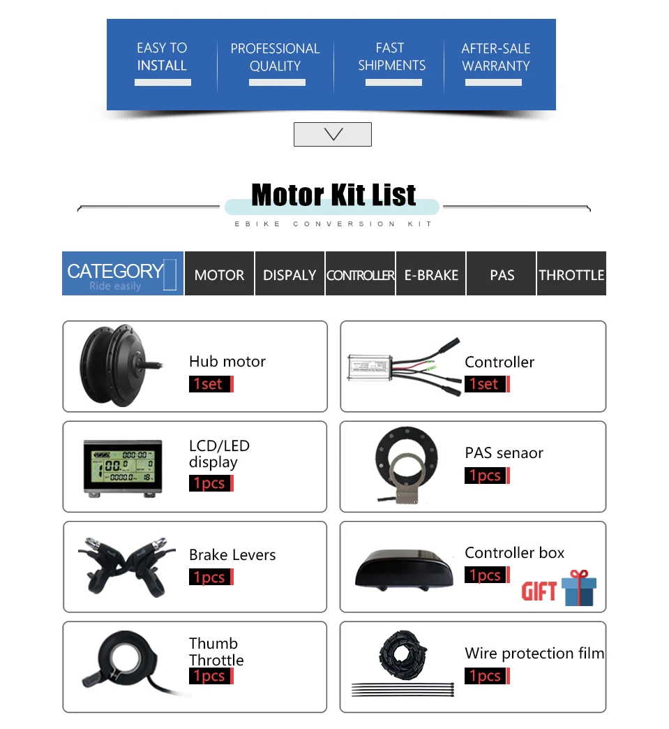■ PAS, Throttle, and E-brake in the kit are optional. If you need to replace it, please see the link to make up the difference at the bottom of the details page, or please contact us.