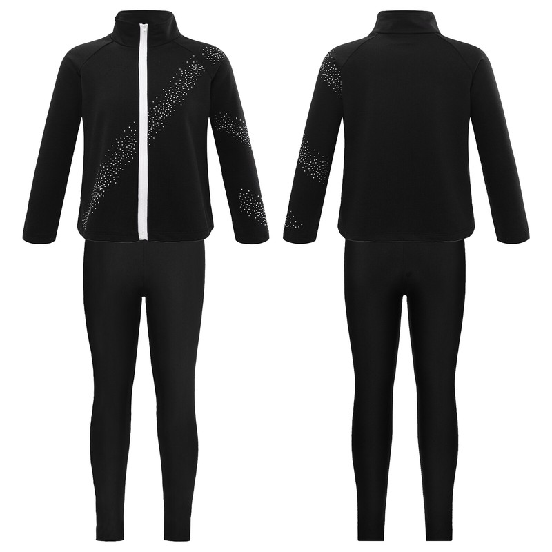 US Kids Set Solid Color Outfits Workout Sports Suit Shiny Costume Black ClothingUSD 12.39