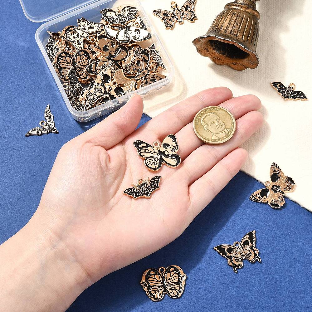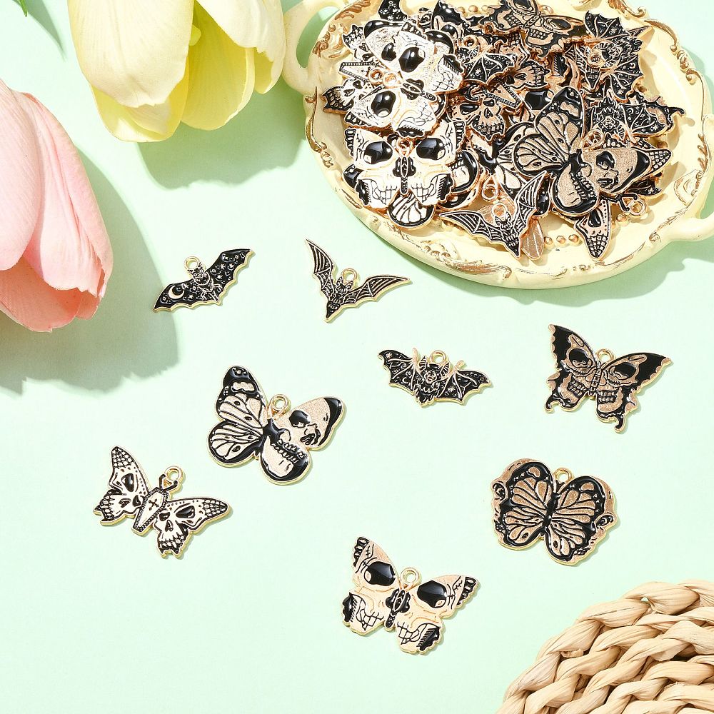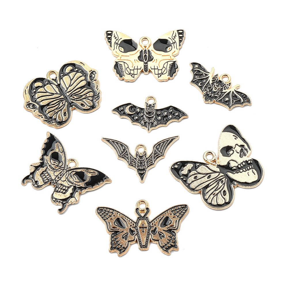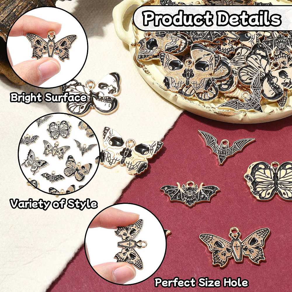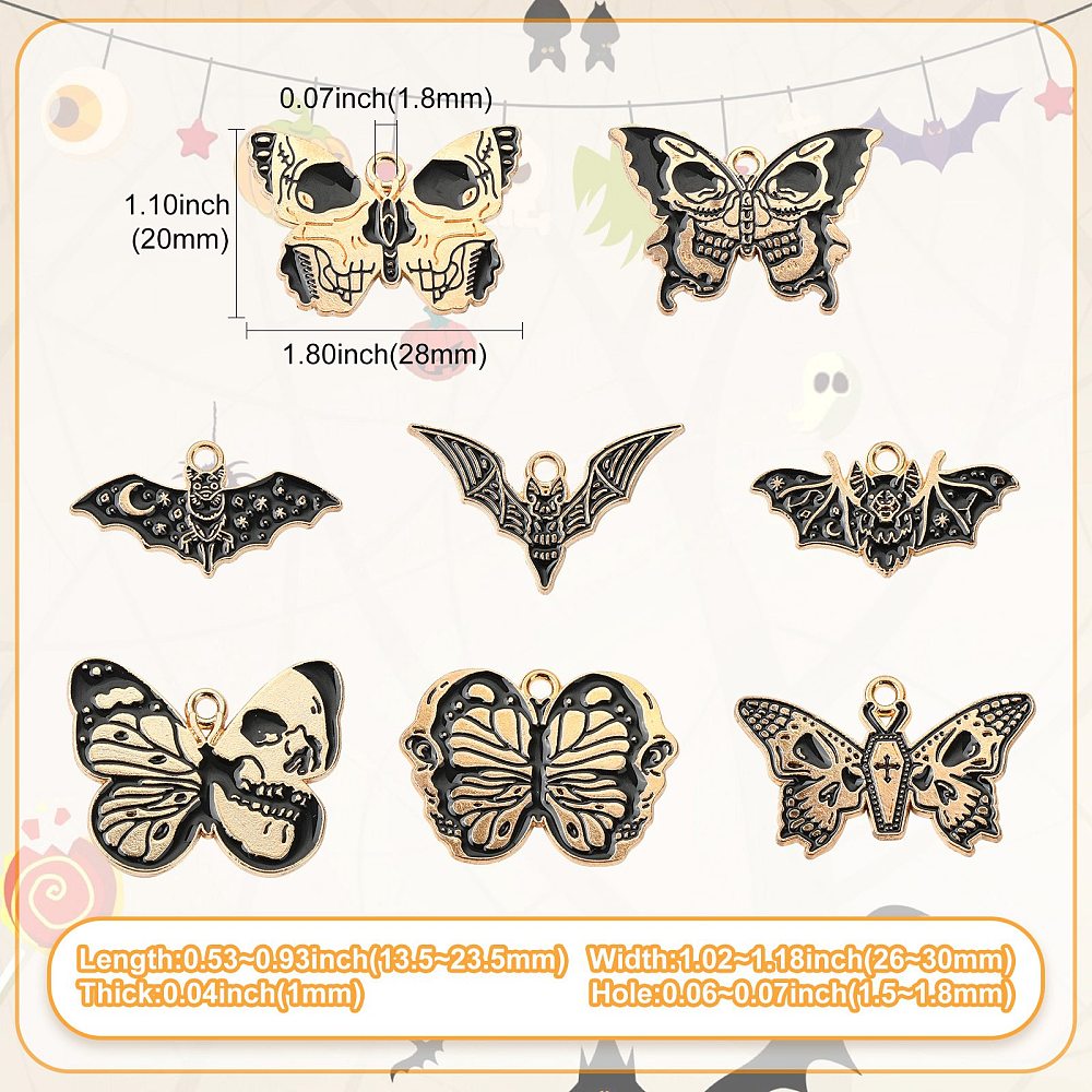 Butterfly with Skull Charm: about 20x28x1mm, hole: 1.8mm, 5pcs;