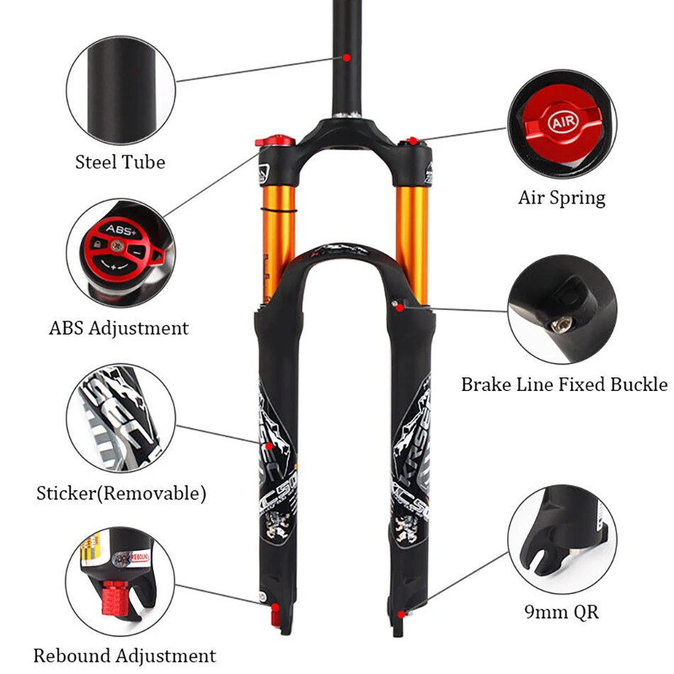 Bicycle Fork 26/27.5/29er Mountain Bikes Air Fork Suspension MTB Fork Inner Tube With Scale Adjustable Damping Manual Contorl Alloy Air and Oil Fork Disc Brake 9mmQR Bike Bicycle Accessories