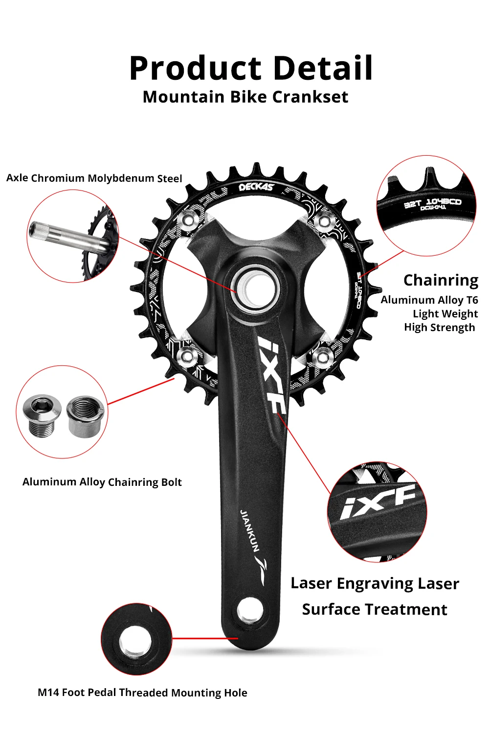 Bicycle Crank Set IXF 104BCD Mountain Bike Crank Arm Set with BB Chainring Bolts MTB Road Bike for Shimano, FSA, Gaint ATX770 ATX770-D XTC 750