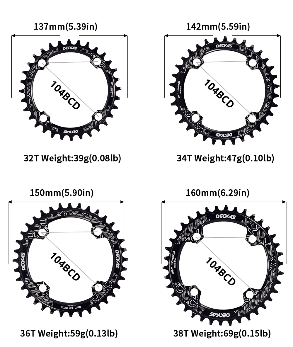 【��DECKAS Chainring】Single speed narrow wide 104mmBCD, 32/34/36/38T, Round/Oval, Black, red,silver, blue, gold, purple