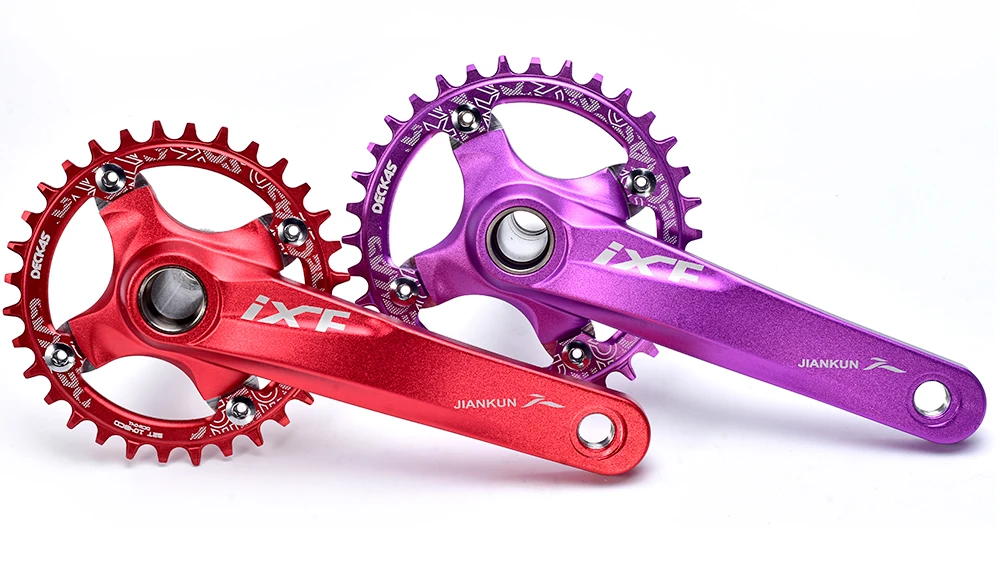 【��Ultra-light Material】Crank and Chainring made of high strength aluminum alloy, light weight, stylish, flashy styling, high axial strength and compatibility.