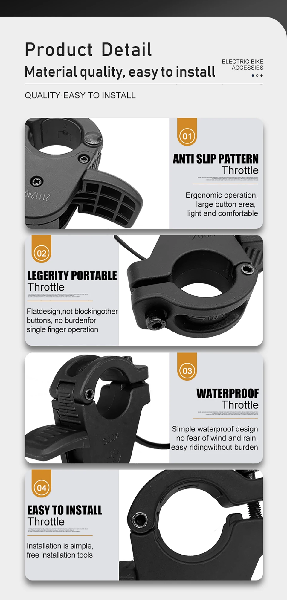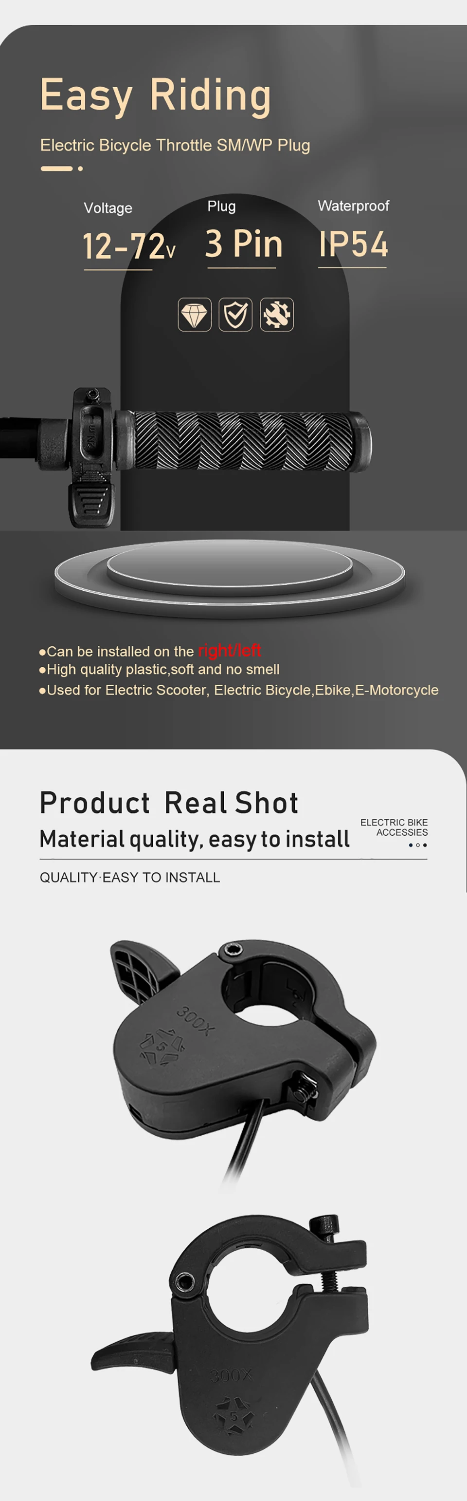 ●Solid materials, novel design, compatible with voltage, the most important thing is that it can be installed without removing the bicycle grip.