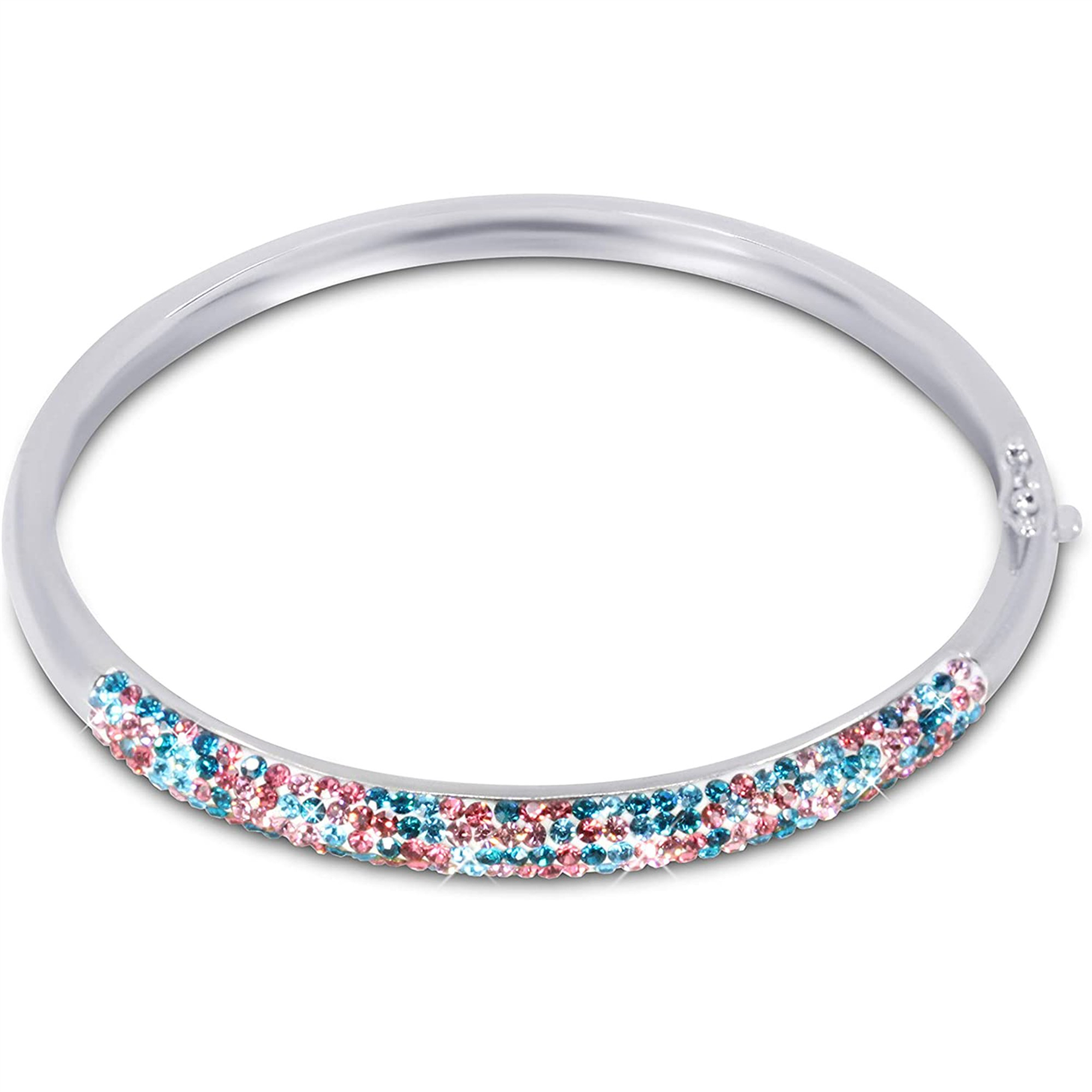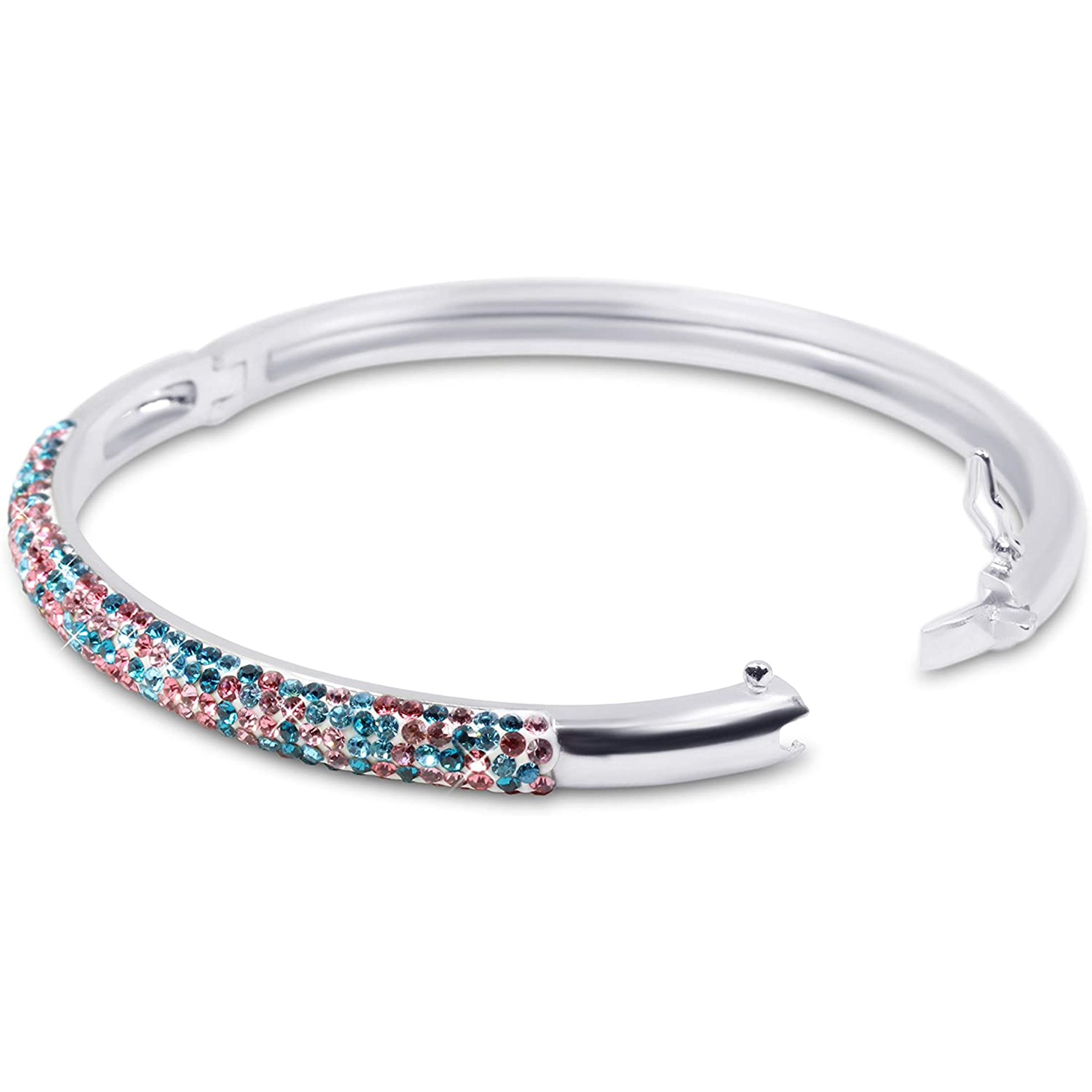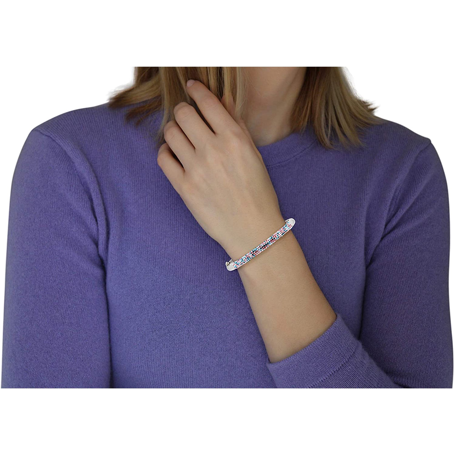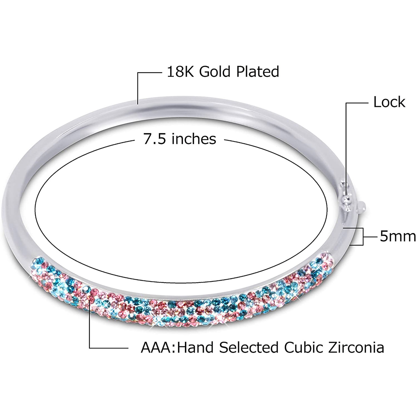 18K White Gold Plated Round Cut Multicolor Cubic Zirconia Bangle Bracelet