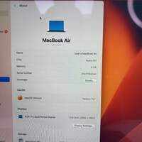 2022 Apple MacBook Air 13.6" M2 3.5GHz 8GB RAM 256GB SSD Midnight MLY33LL/A Items included in this sale: 2022 Apple MacBook Air 13.6" M2 3.5GHz 8GB RAM 256GB SSD Midnight MLY33LL/A Sorry, no box or anything else included *Please note, if it is not listed it is not included - such as power cables or other accessories. Specifications: Collection Apple MacBook Brand Apple Model MacBook Air MPN MLY33LL/A Release Year 2022 Processor Brand Apple Processor M2 Processor Generation 2nd Gen Processor Cores 8C CPU Processor Speed 3.5GHz GPU (Cores) or Graphics Card 10C GPU Memory (Ram) 8GB RAM Storage 256GB Storage Type SSD Integrated Graphics M2 Screen Size 13.6" Display Built-in Retina Display Resolution 2560 x 1664 Retina Yes Touch Bar/Fingerprint Sensor No/No Bluetooth Yes Webcam Yes Microphone Yes WiFi Yes Color Midnight MFG Warranty? No Condition Good Operating System Ventura 13.7 Connections 2x Thunderbolt 4.0 (USB-C) Port MagSafe 3 3.5mm Audio Jack 3.5mm Audio Jack Cycle Count 24 Battery Condition Normal Maximum Battery Capacity 100% UPC N/A Serial# Y2D4L3VJMX Password password Cosmetic condition: The top is in good cosmetic condition with minimal wear. The bottom is in good cosmetic condition with minimal wear. All four sides are in good cosmetic condition with minimal wear. All of the ports are in good condition and clean. The screen is in good condition with some minor wear and scuffs. The keyboard is in good condition with some minor wear and signs of use. The hinges are in good condition, sturdy and functioning properly. The bezel is in good cosmetic condition with little to no wear. Please view our close up photos, as these are taken of the actual item being offered for sale. Functionality condition: The LCD is fully functional with no damage or issues. I was able to connect to a WiFi network and test the audio by playing a video. The WiFi and audio are both fully functional. The keyboard has been tested and all keys function properly.