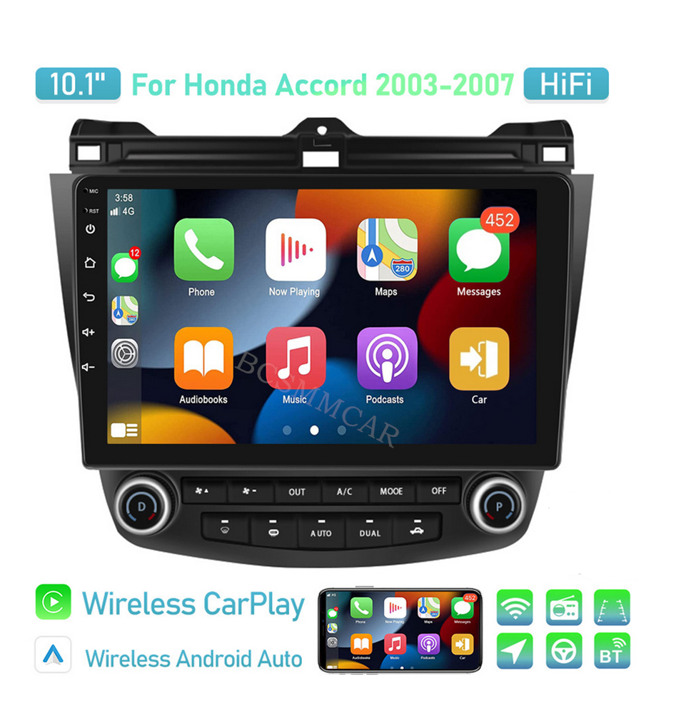 10.1in Car Stereo Radio GPS Navigation FM Head Unit WIFI Player Quad Core 2+64G Fit For 2003-2007 Honda Accord For Apple Carplay Android Auto