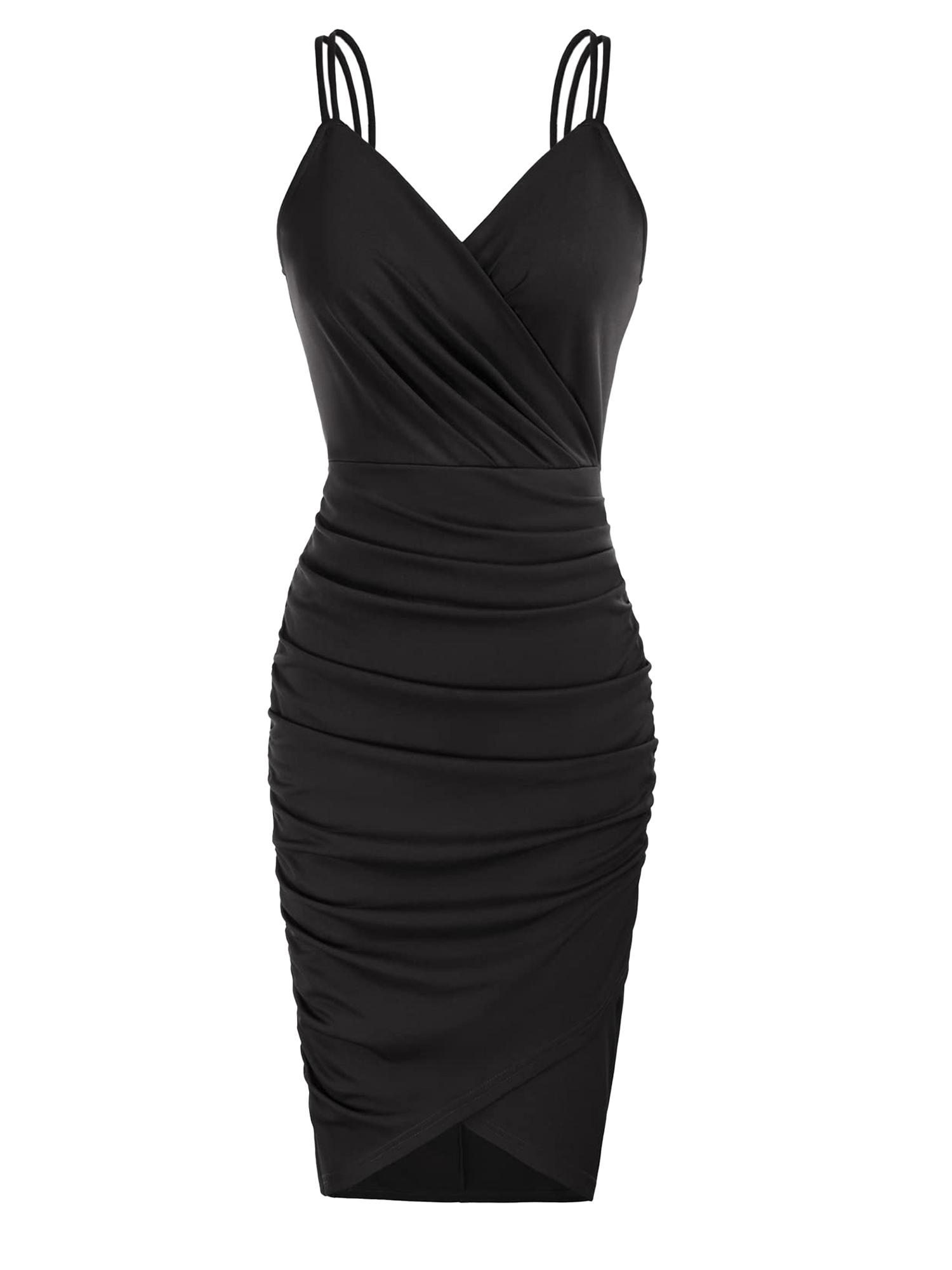 Women's Sexy Ruched Party Club Dress Spaghetti Straps Wrap V-Neck Bodycon Dress
