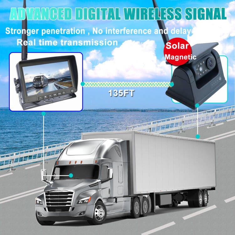 ► 【Latest Digital Signal】RV backup camera with Unique digital signal dedicated dual antenna, power, transmission distance, stability, durability are improved by at least 50%. The rv car camera can send 1080P videos to the display via the stronger signal. The signal can reach 320ft in open area and working on vehicle range under135ft.