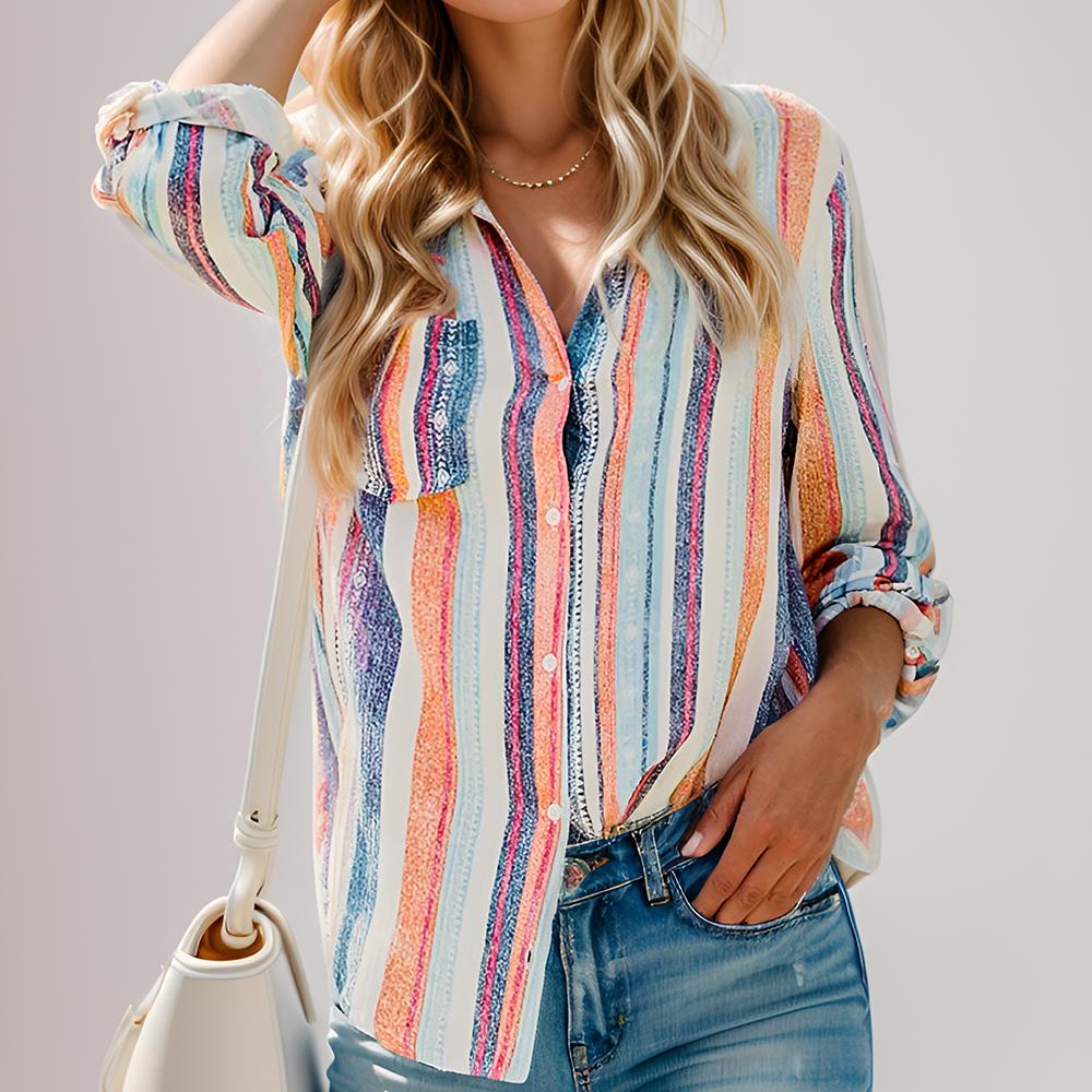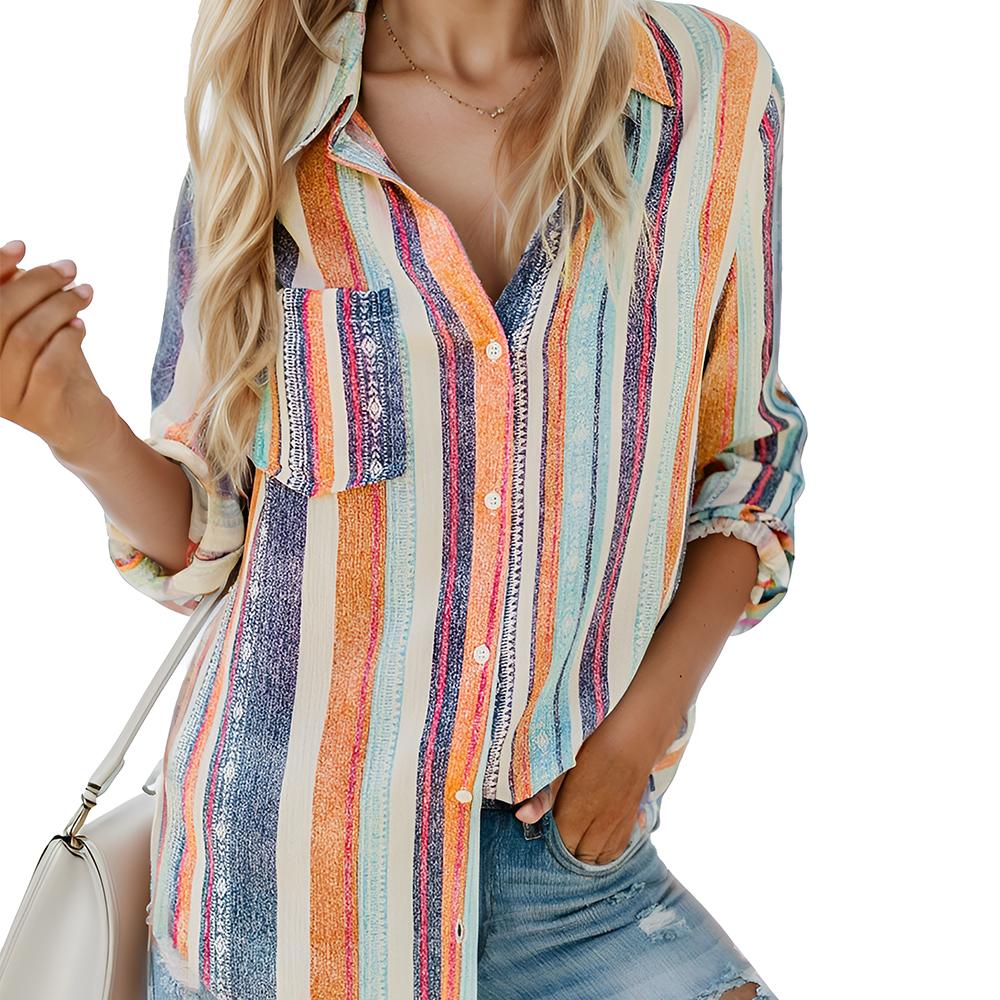 Womens Button Down Shirts Striped Casual Dress Shirt Long Sleeve Collared Office Work Blouses Tops