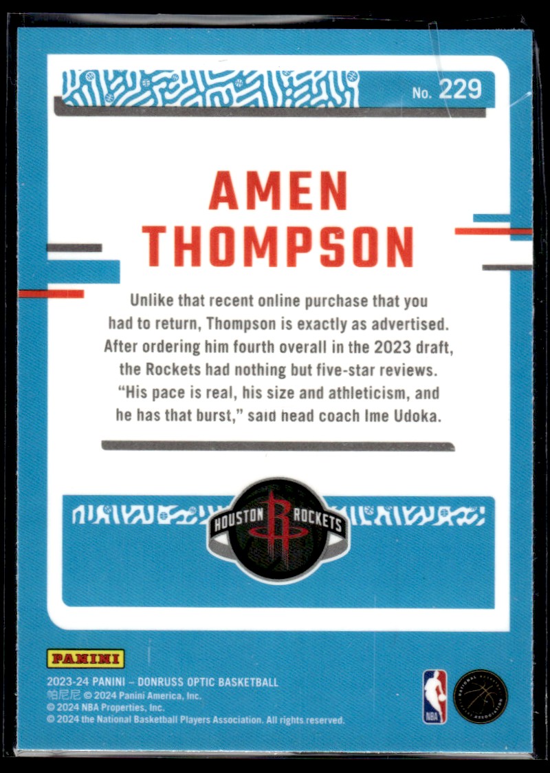| 2023-24 DONRUSS OPTIC AMEN THOMPSON RC HOUSTON ROCKETS #229 |