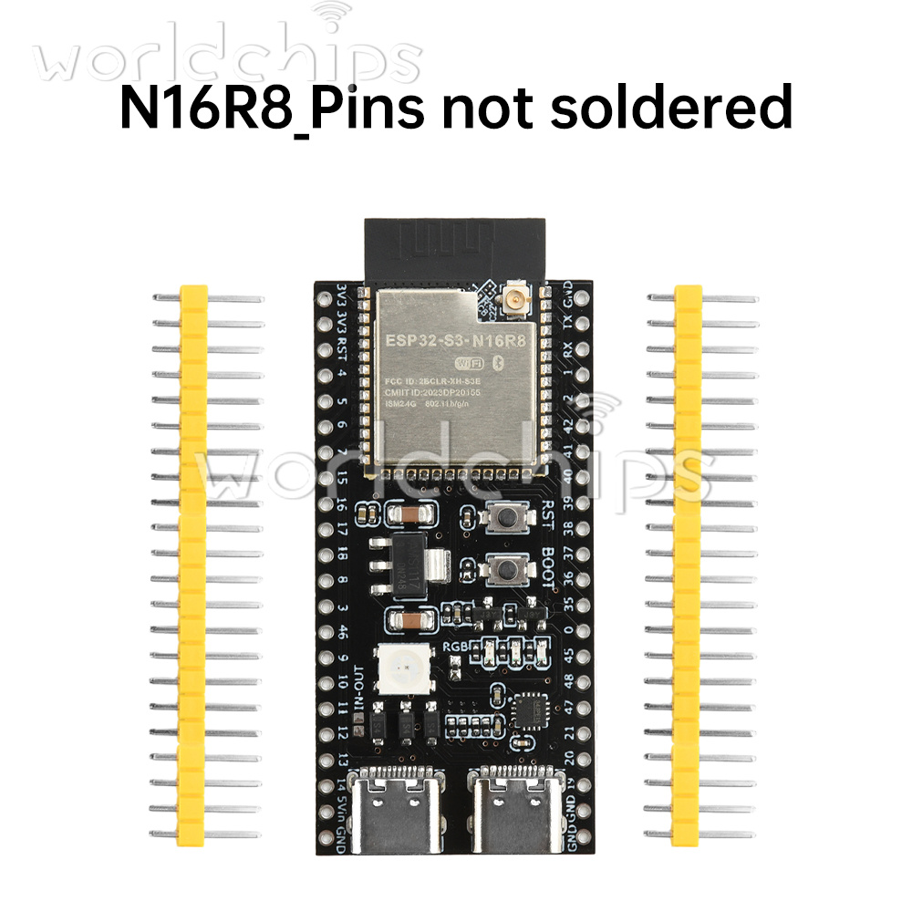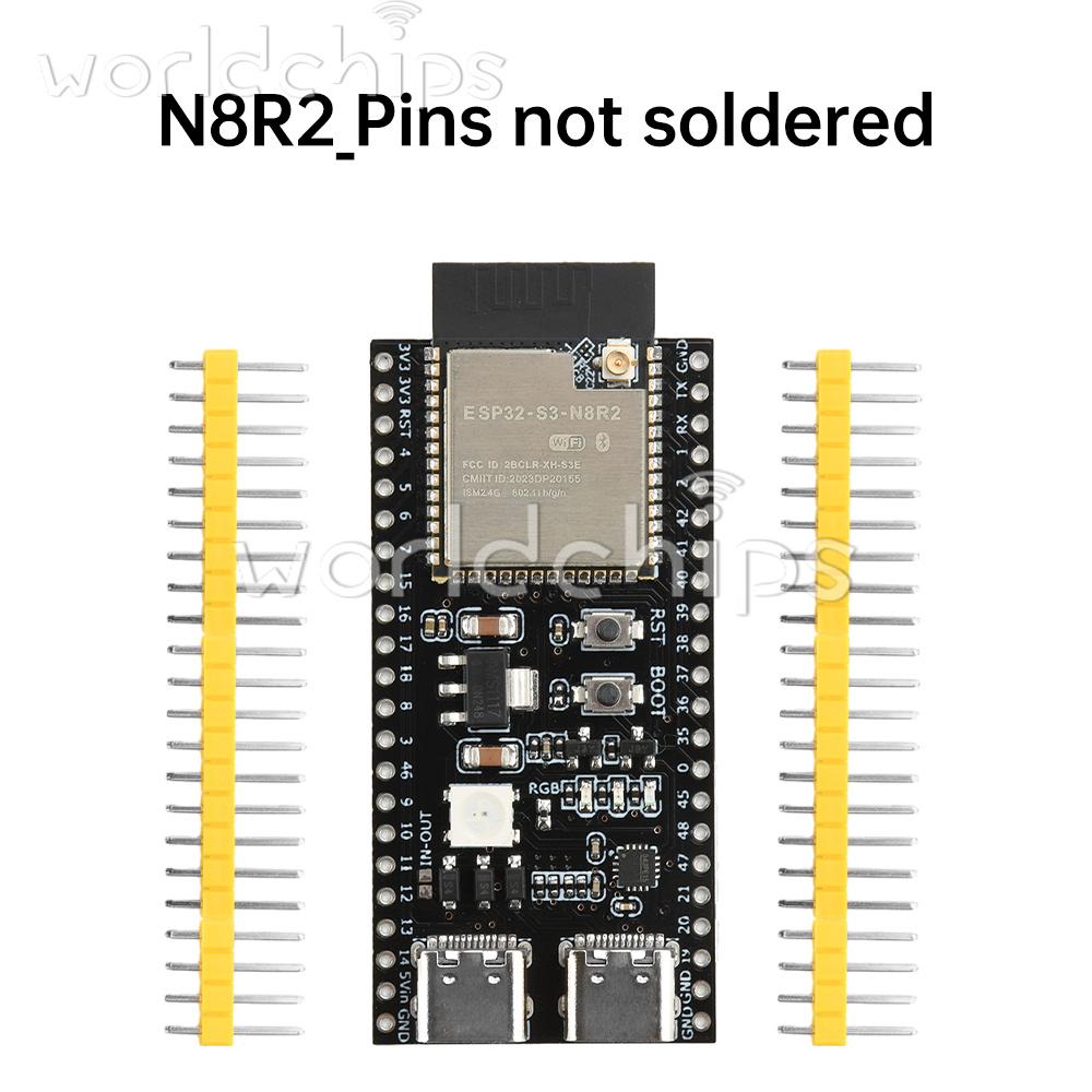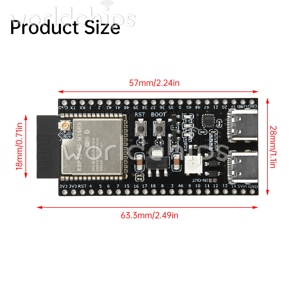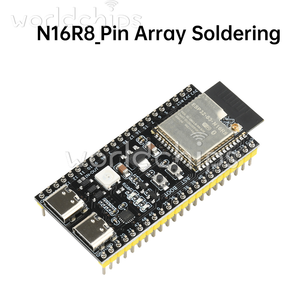 The product is based on the ESP32-S3-WM-1 module development board, there are more IO ports, onboard WS2818RGB, corresponding to IO48. with two Type-C ports, one can be used directly, with COM marking, the other USB can be used with OTG or hold down the BOOT power on the port can be displayed normally and download the program, the factory program is to connect WiFi after the RGB lights up automatically and goes out when disconnected.