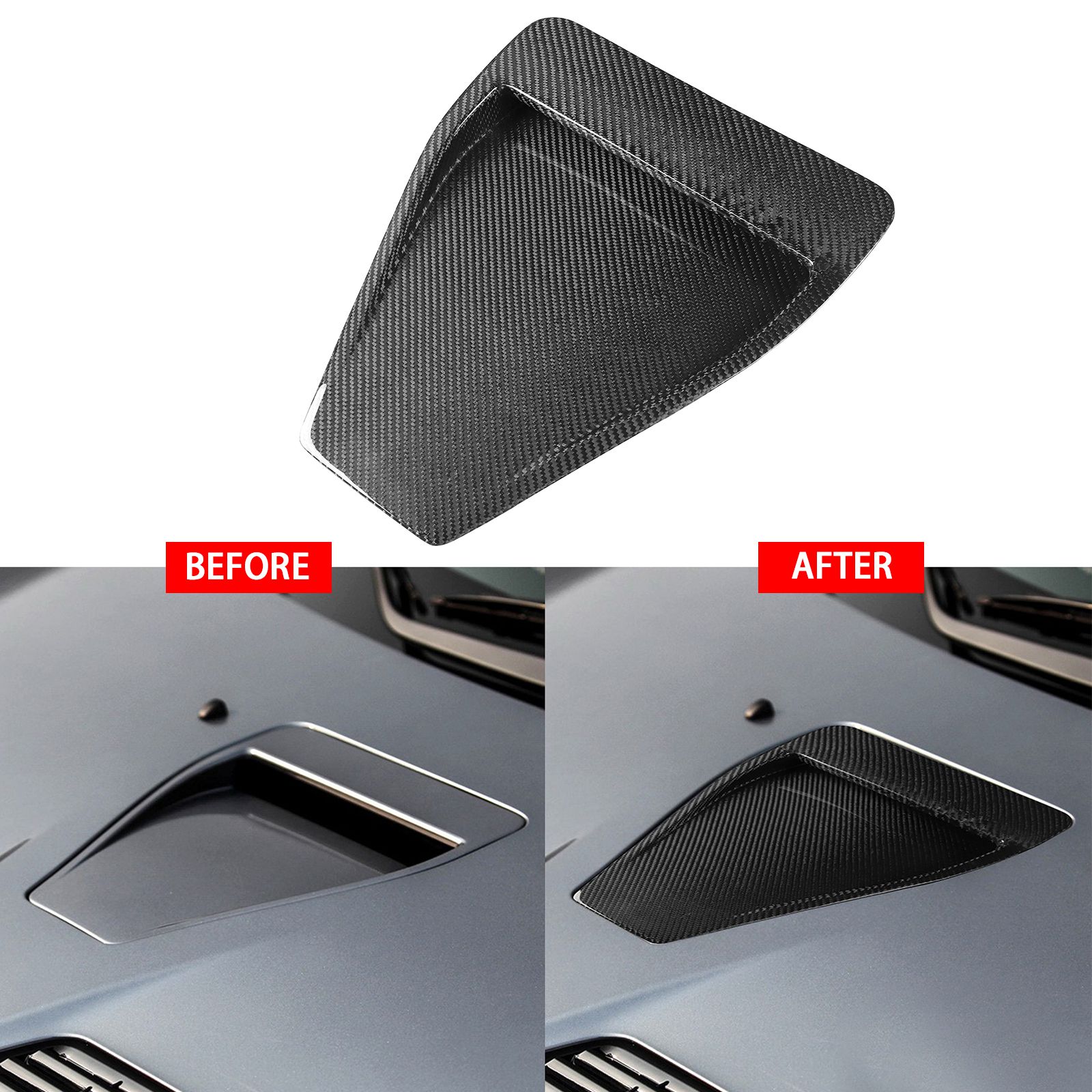 Superior Carbon Fiber: The hood scoop vent cover is made from 3k glossy carbon fiber, 1mm thick of epoxy coating, ensuring ruggedness and durability. It is resistant to UV rays and fouling, providing long lasting performance.