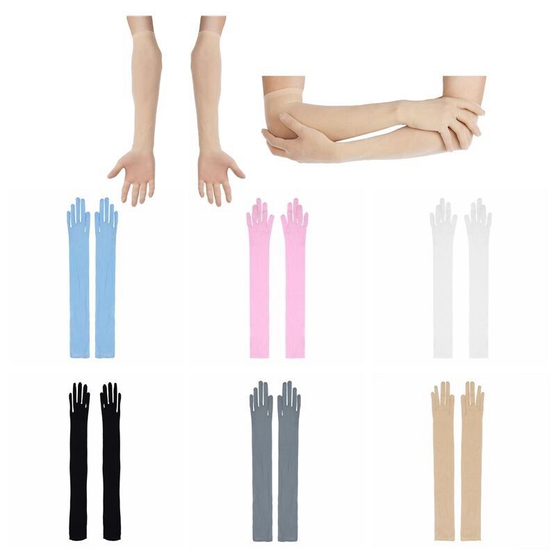 Full finger design, over the arm length gloves, see through sheer.