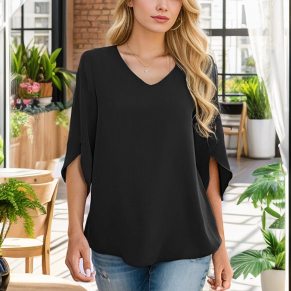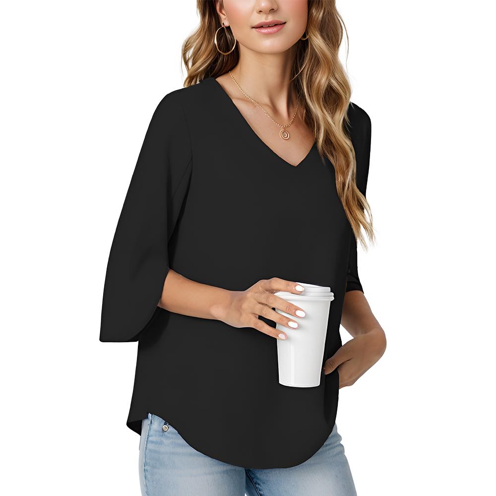Womens 2025 Summer 3/4 Sleeve Tunic Tops Chiffon Work Blouse V-Neck Dressy Casual Shirt
