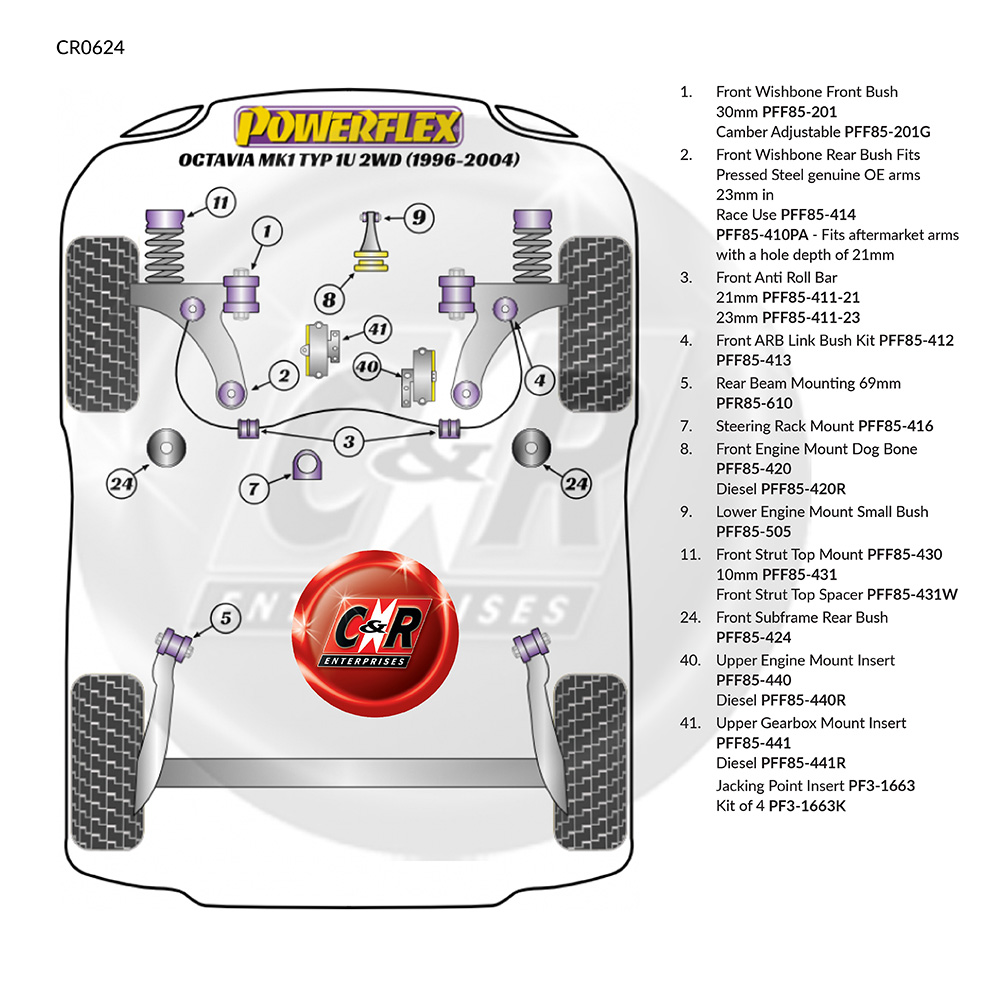 To help identify the correct Powerflex Bush(es) you require, please refer to the location diagram further down the listing.