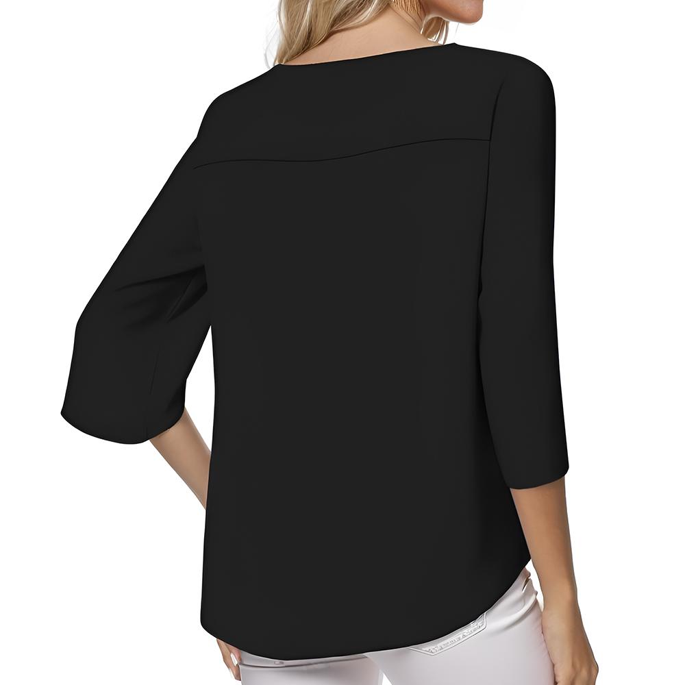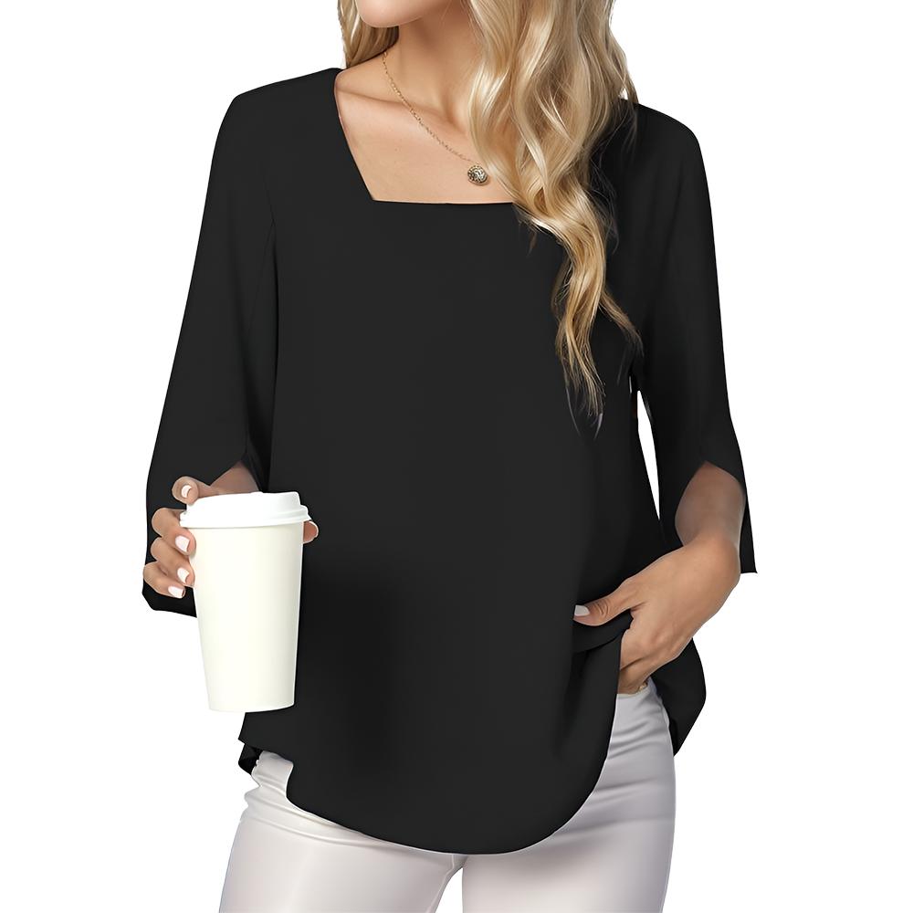 Features: Casual ladies chiffon blouse, square neck t-shirt, half ruffle split sleeve, two layers design, 3/4 sleeve tops, chiffon shirts loose fit