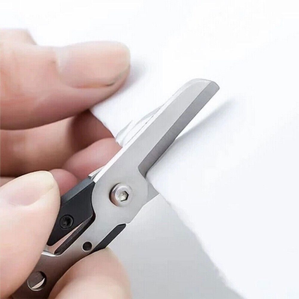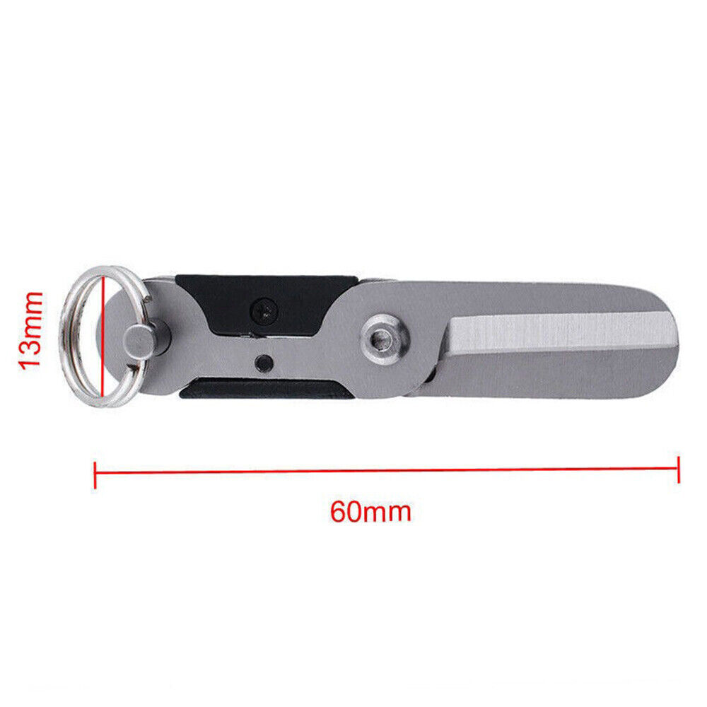 Stainless steel, the handle is wrapped with black rubber; Sharp scissors, anti-loss, easy to wear can be folded or disassembled, which can be combined with a key ring.