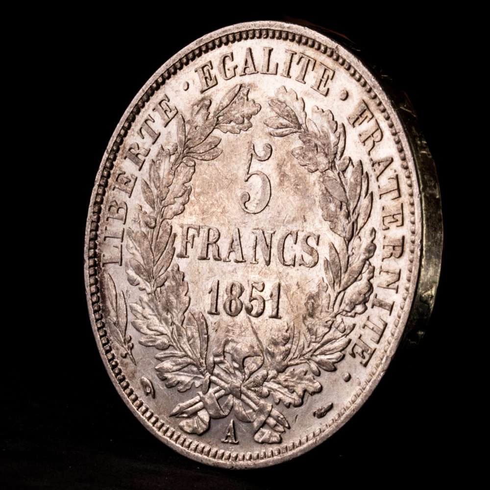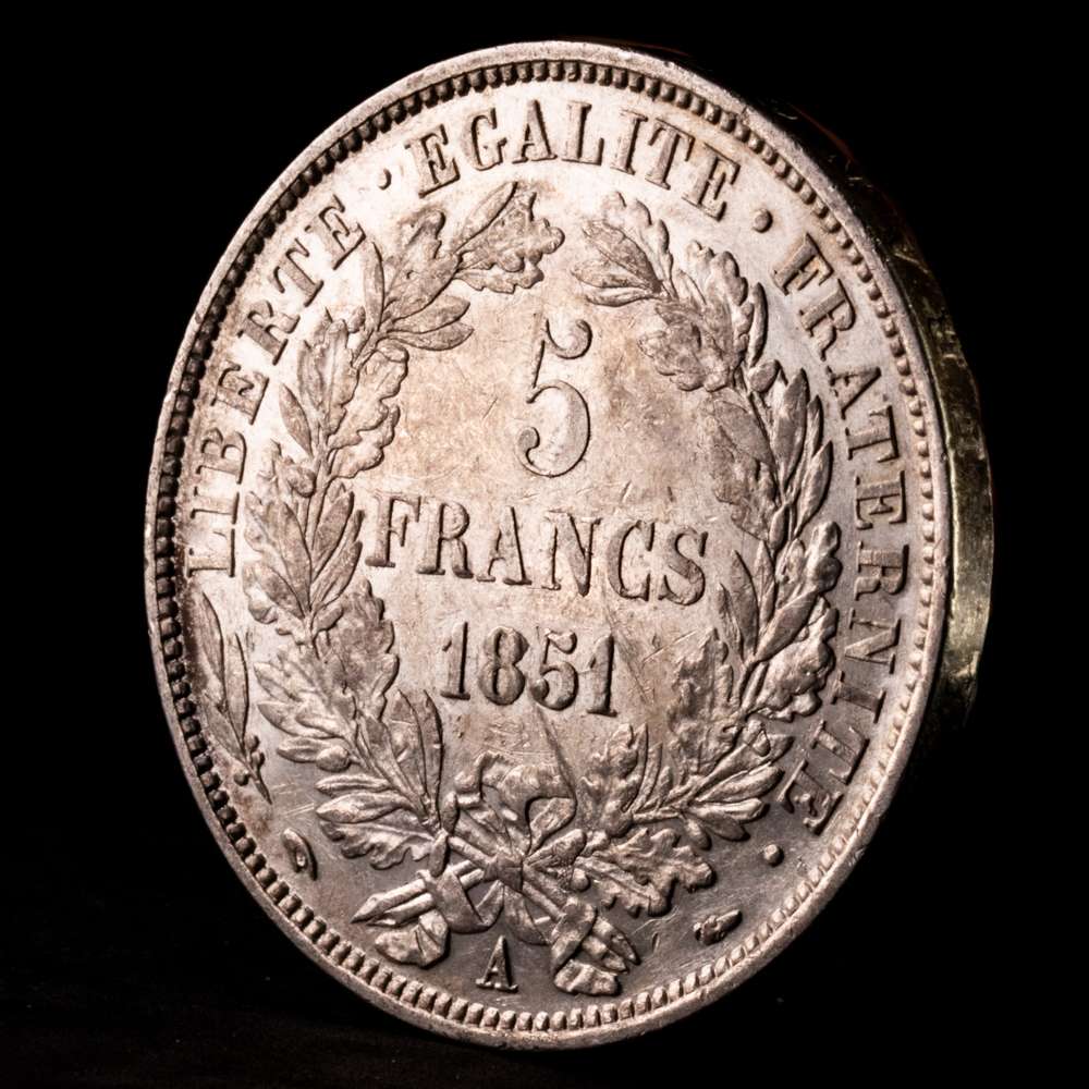 Francia - II República. 5 Francs. (24,92 g.). A-Paris. 1851. KM-761. XF+. Pátina