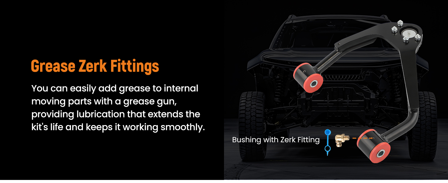 - The polyurethane bushing comes with a 90-degree zerk fitting, which can extend the service life and facilitate daily maintenance.