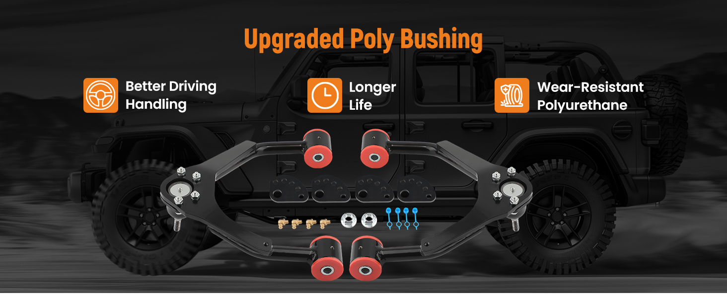 3. Adorned with a striking gloss black powdercoat finish, our tubular design not only upgrades your vehicle's suspension performance but also adds an element of elegance to its aesthetics