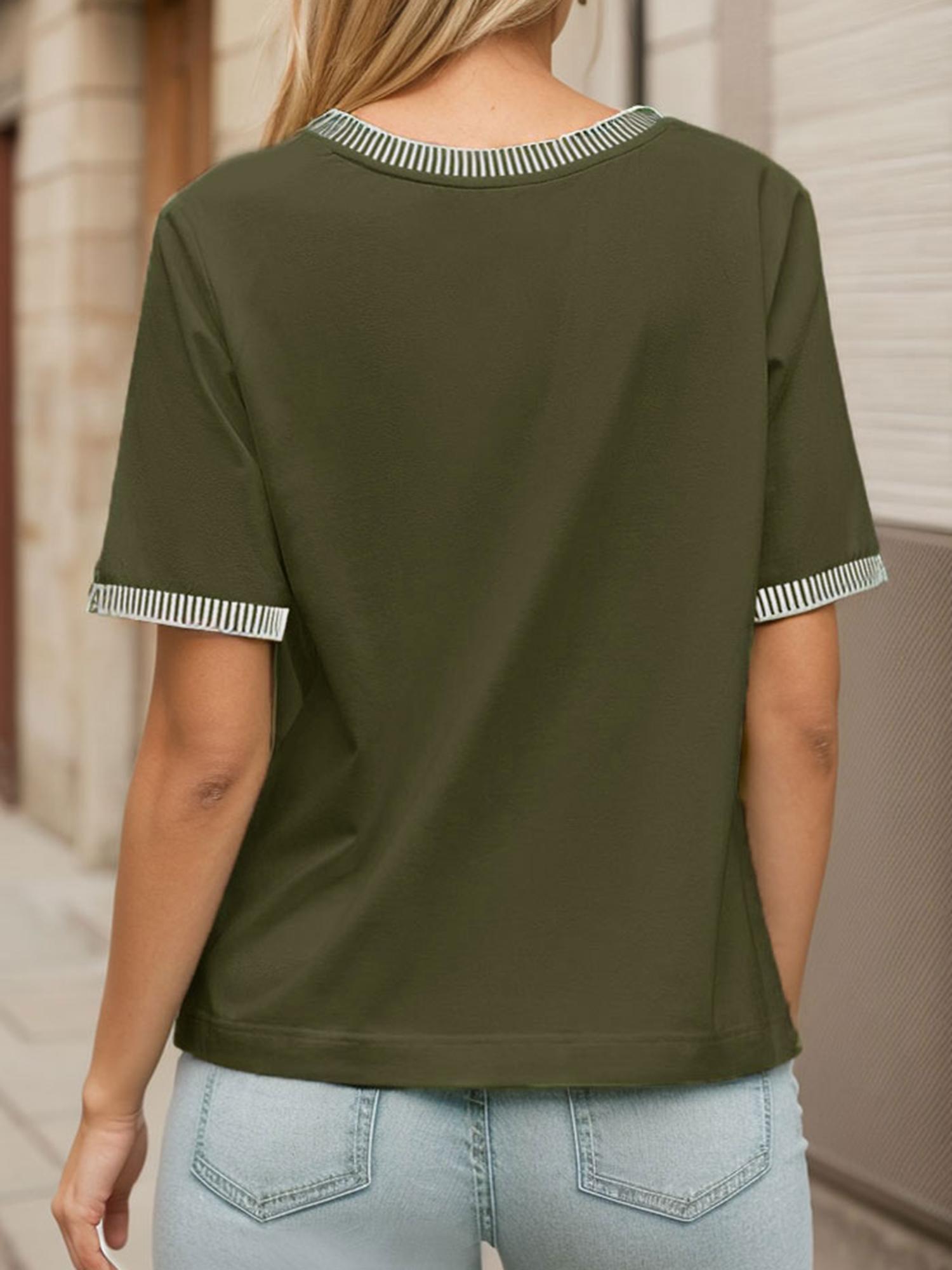 The cute shirts are accentuated with classic striped design along the neckline and cuffs, creating an understated charm that's hard to resist. These summer tops are just the right balance between trendy and casual.