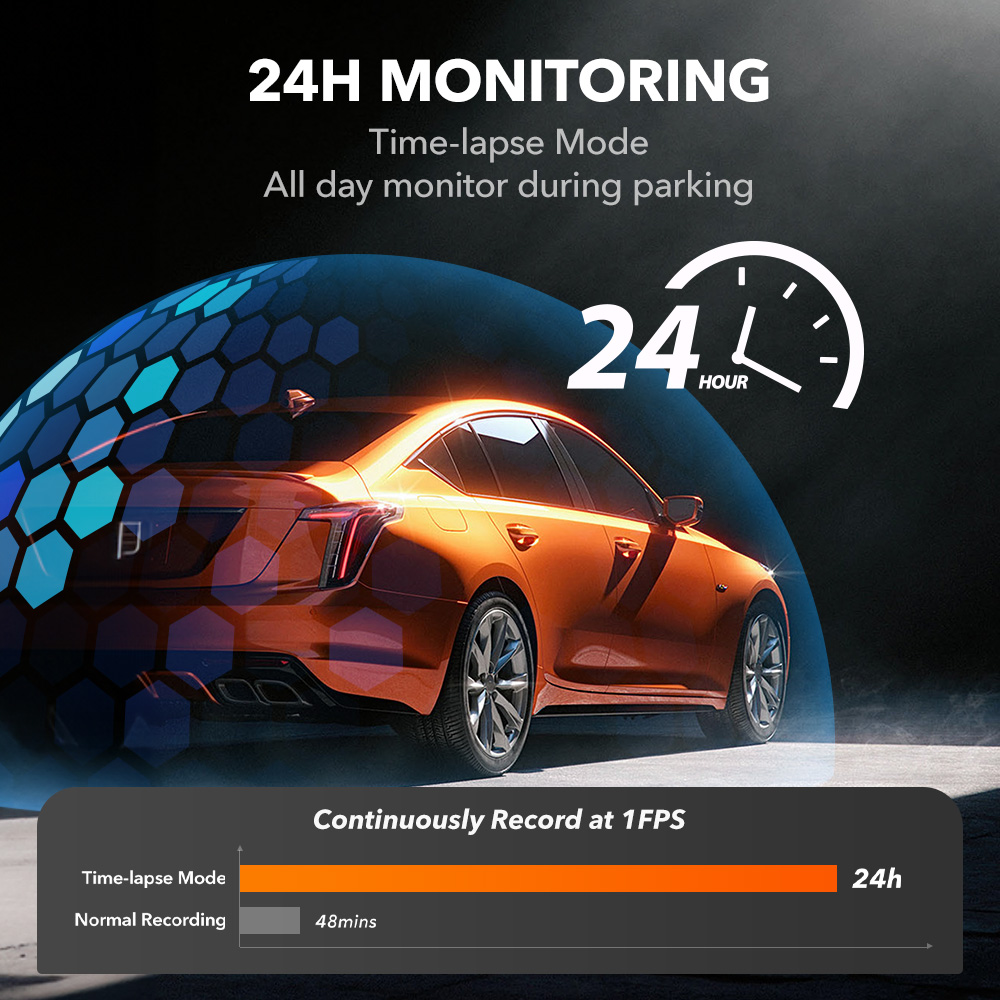 4. When using the parking monitoring function, please select the [time-lapse] recording mode. Otherwise, the driving recorder will quickly drain your car battery.