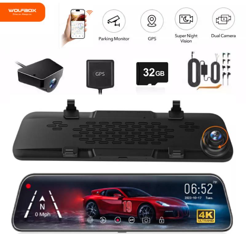 WOLFBOX 4K Dual Mirror Dash Cam---GUIDE YOUR CAR SAFETY