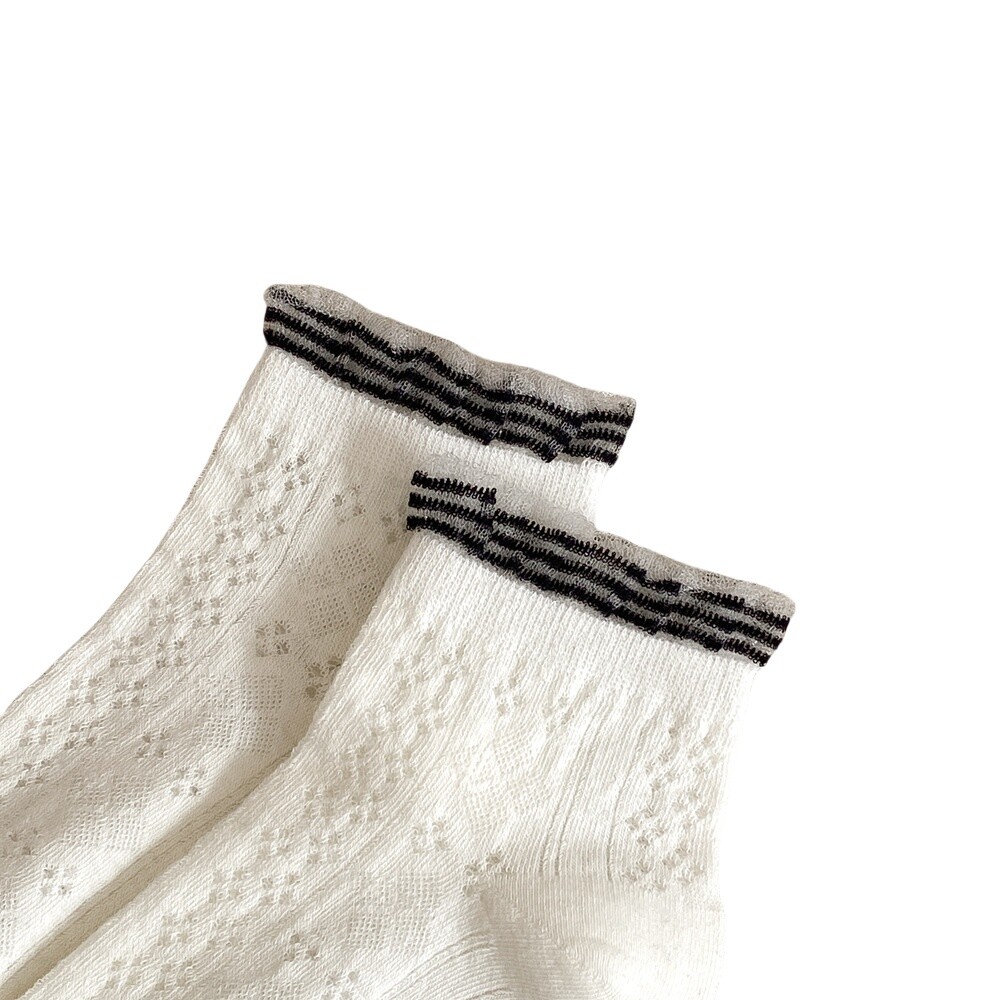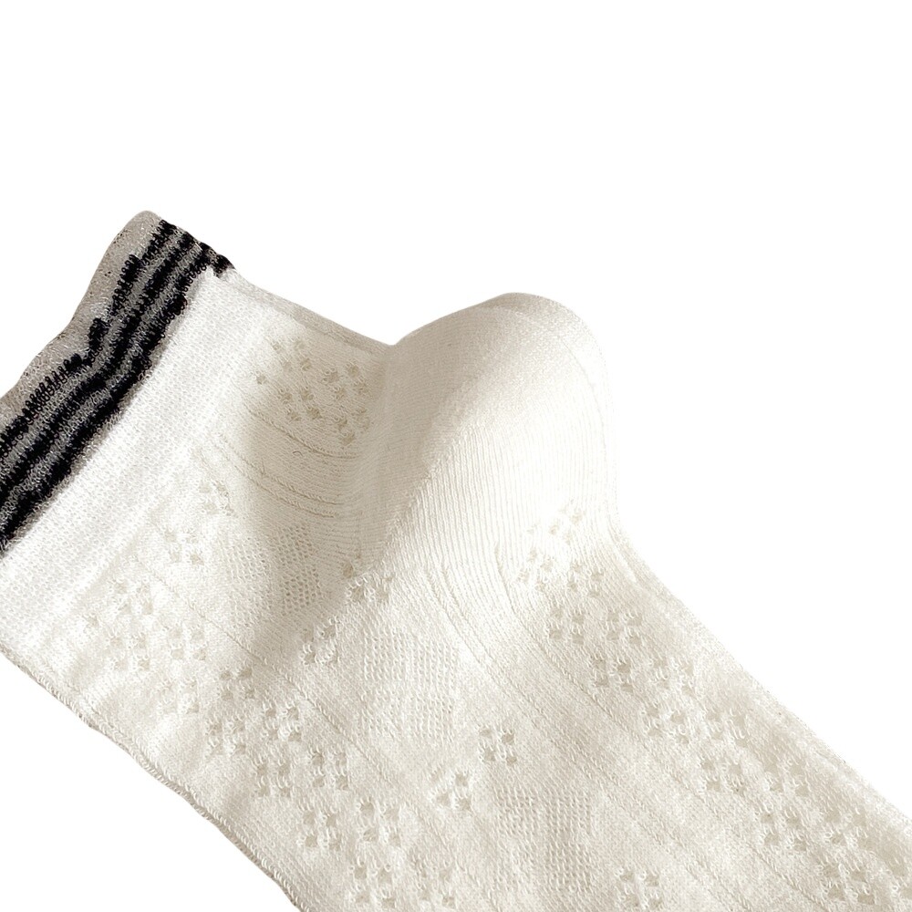 Material:Mesh+LaceSize: One Size fits mostPackage Includes: 5 Pairs x SocksComfortable, breathable and stretchableCute lace design; Perfect for summer and autumn wear