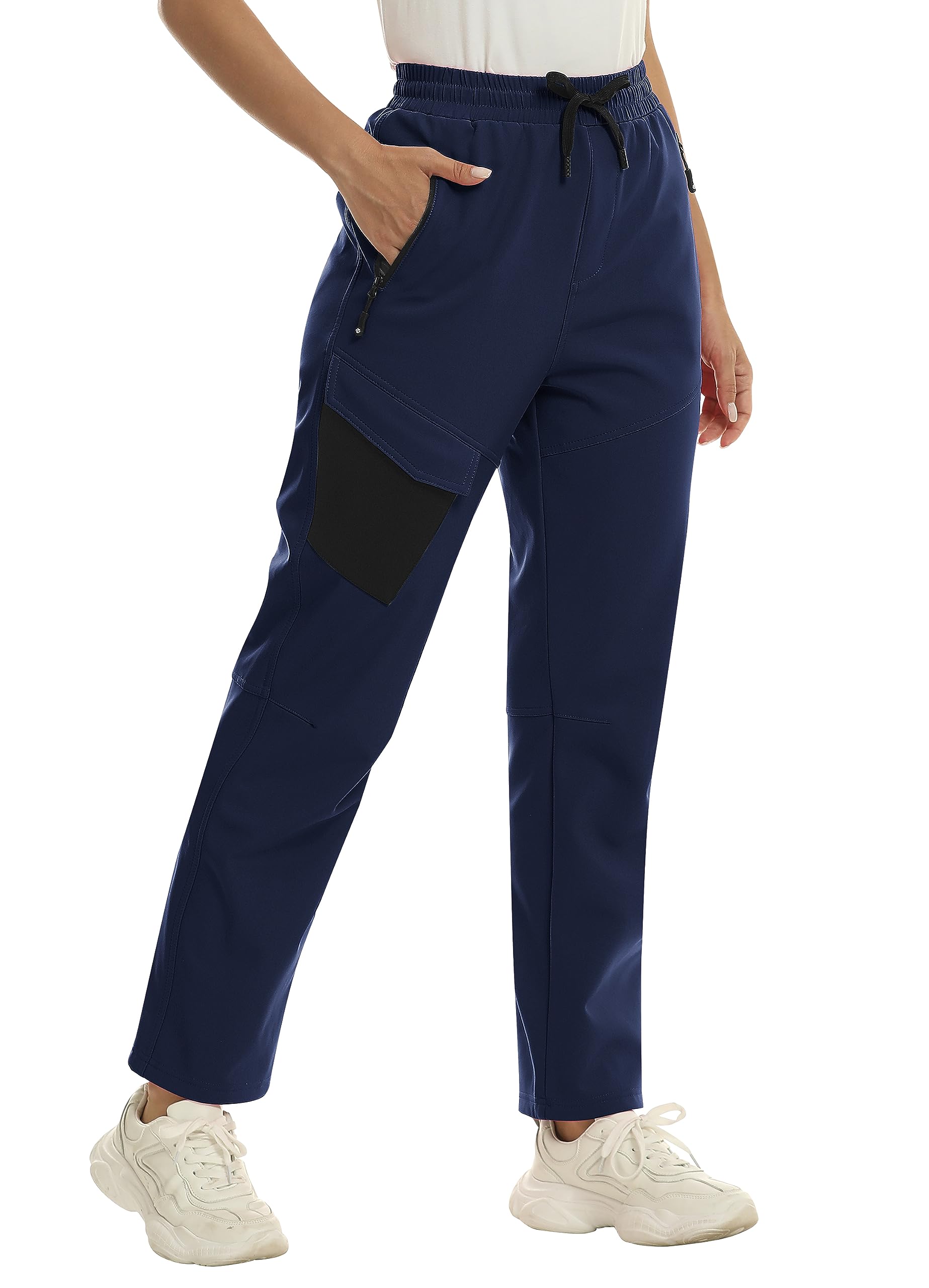 MoFiz Waterproof Windproof Warm Fleece Softshell Skiing Pants for Winter Ice Sports Ladies Climbing Fishing Outdoor Wear Navy L