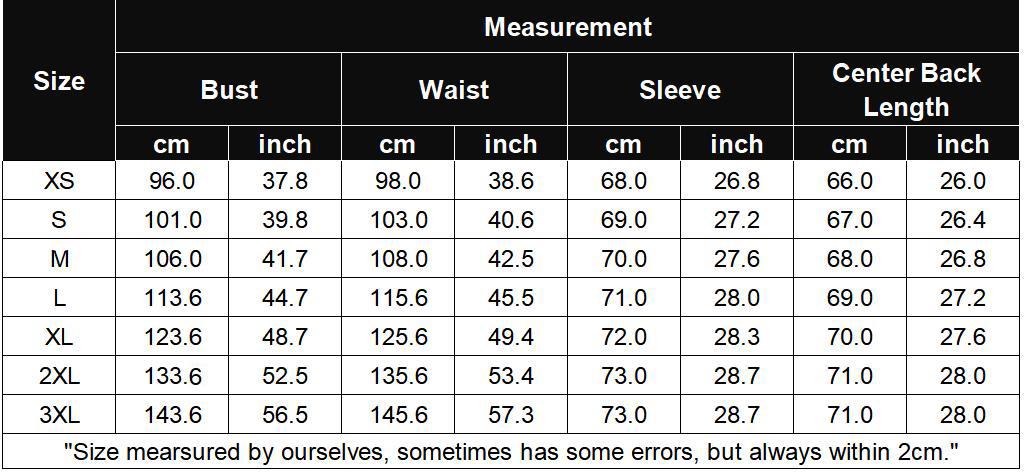 Size: There are 5 sizes (S/M/L/XL/XXL) available for the following listing. please allow 1-2cm differs due to manual measurement, thanks (All measurement in cm and please note 1cm=0.3937inch)