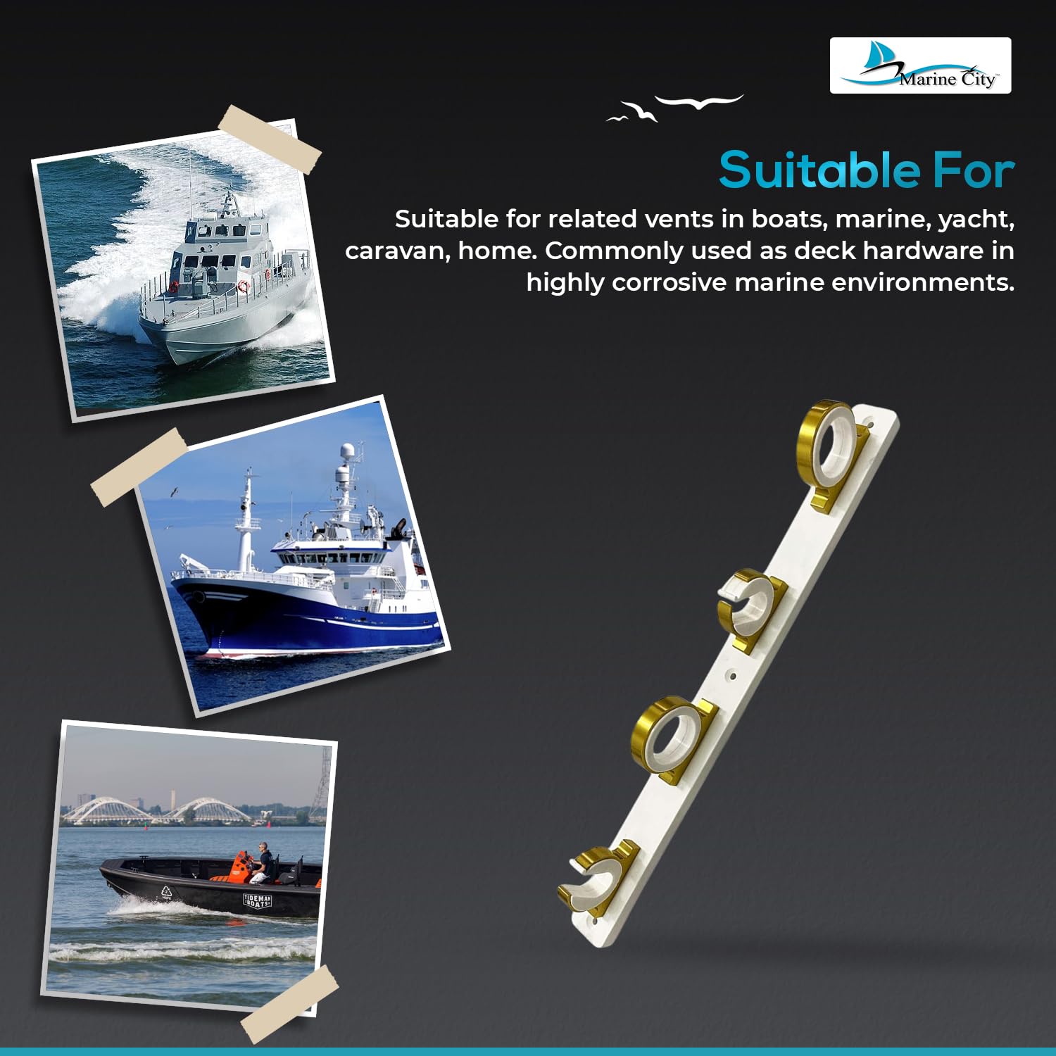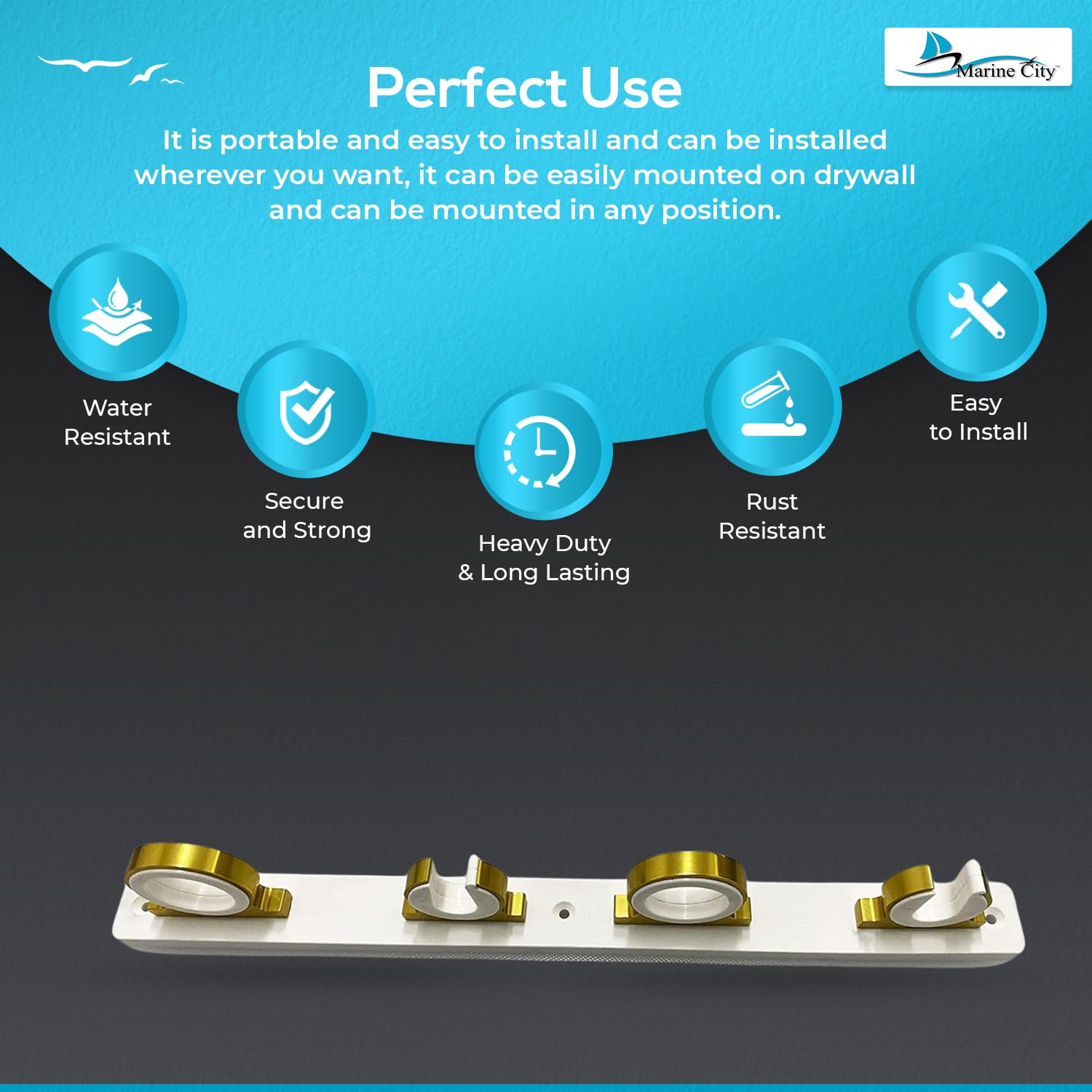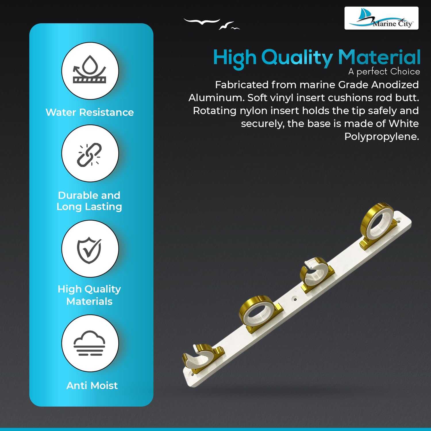 MARINE CITY 4 Rod Reel Fishing Rod Rack with White Poly Board Aluminum Gold Powder Coated Holder for Boats Marines Vans Cars ( Pack of 1)