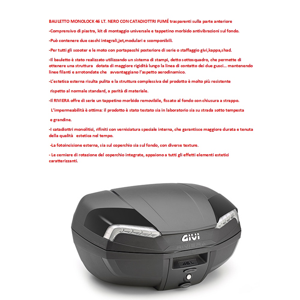 -Per tutti gli scooter e le moto con portapacchi posteriore di serie o staffaggio givi,kappa,shad.