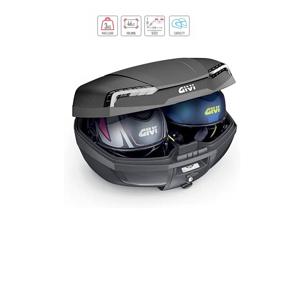 -Può contenere due caschi integrali,jet,modulari e scomponibili.